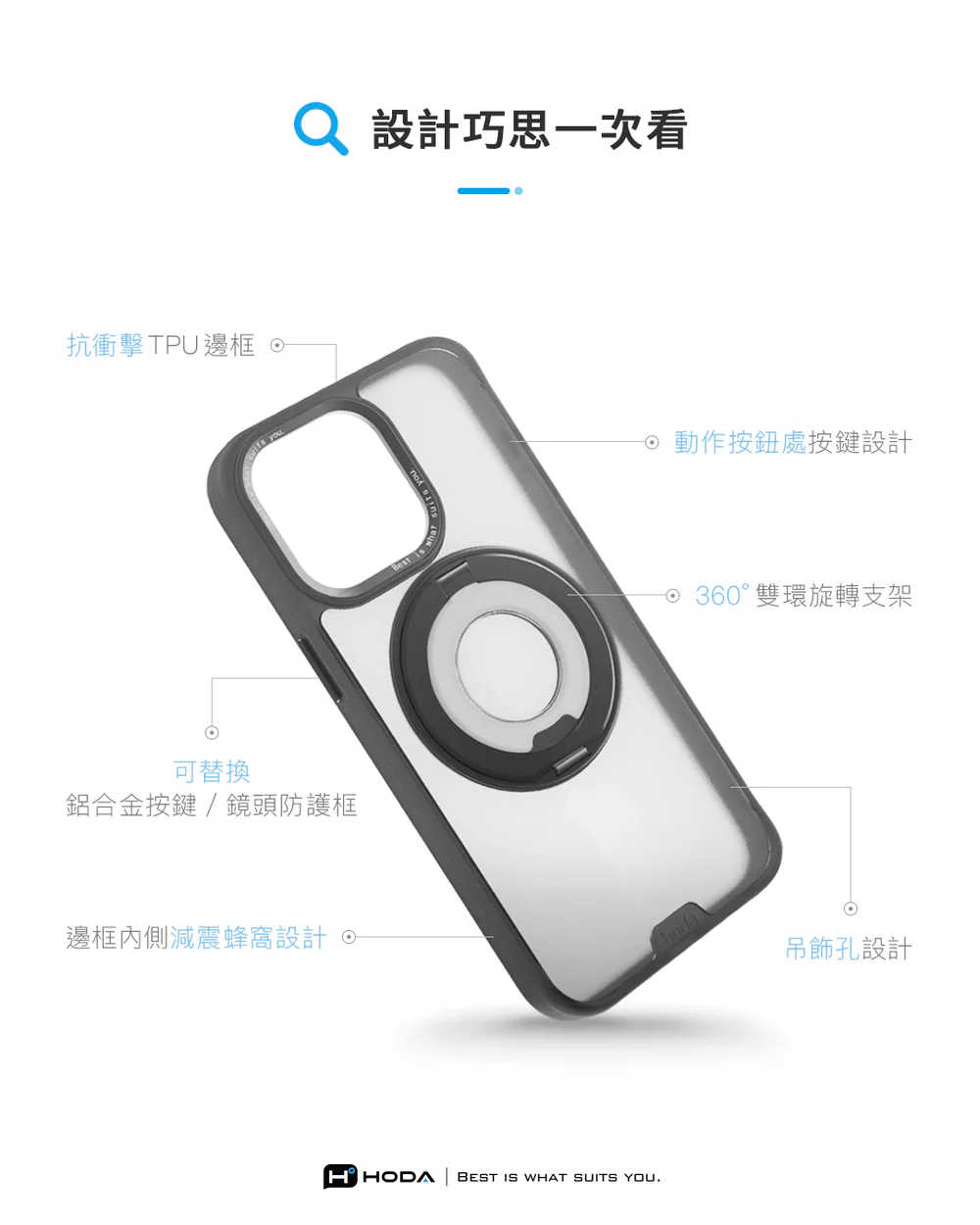 ✦ 360度指環支架 ✦ 吊飾孔功能 ✦ 蜂窩抗衝擊