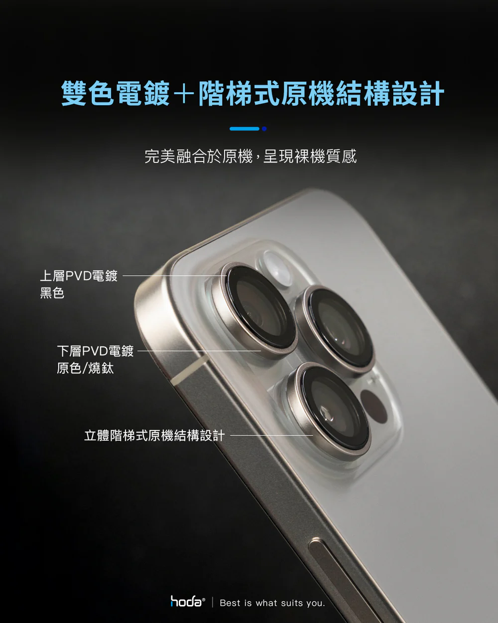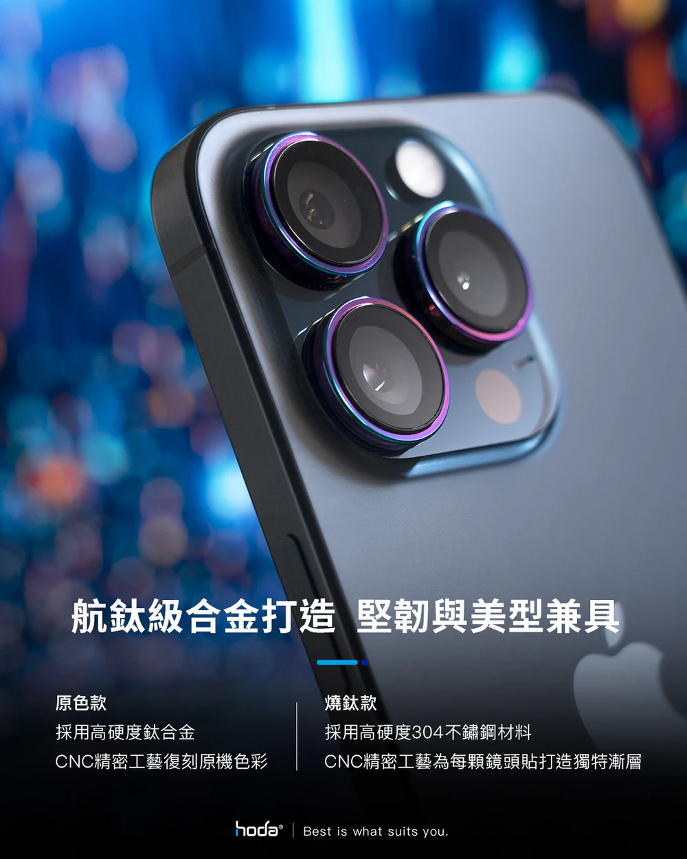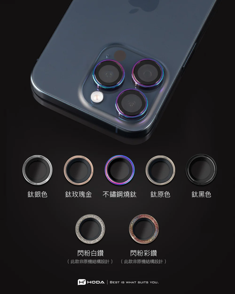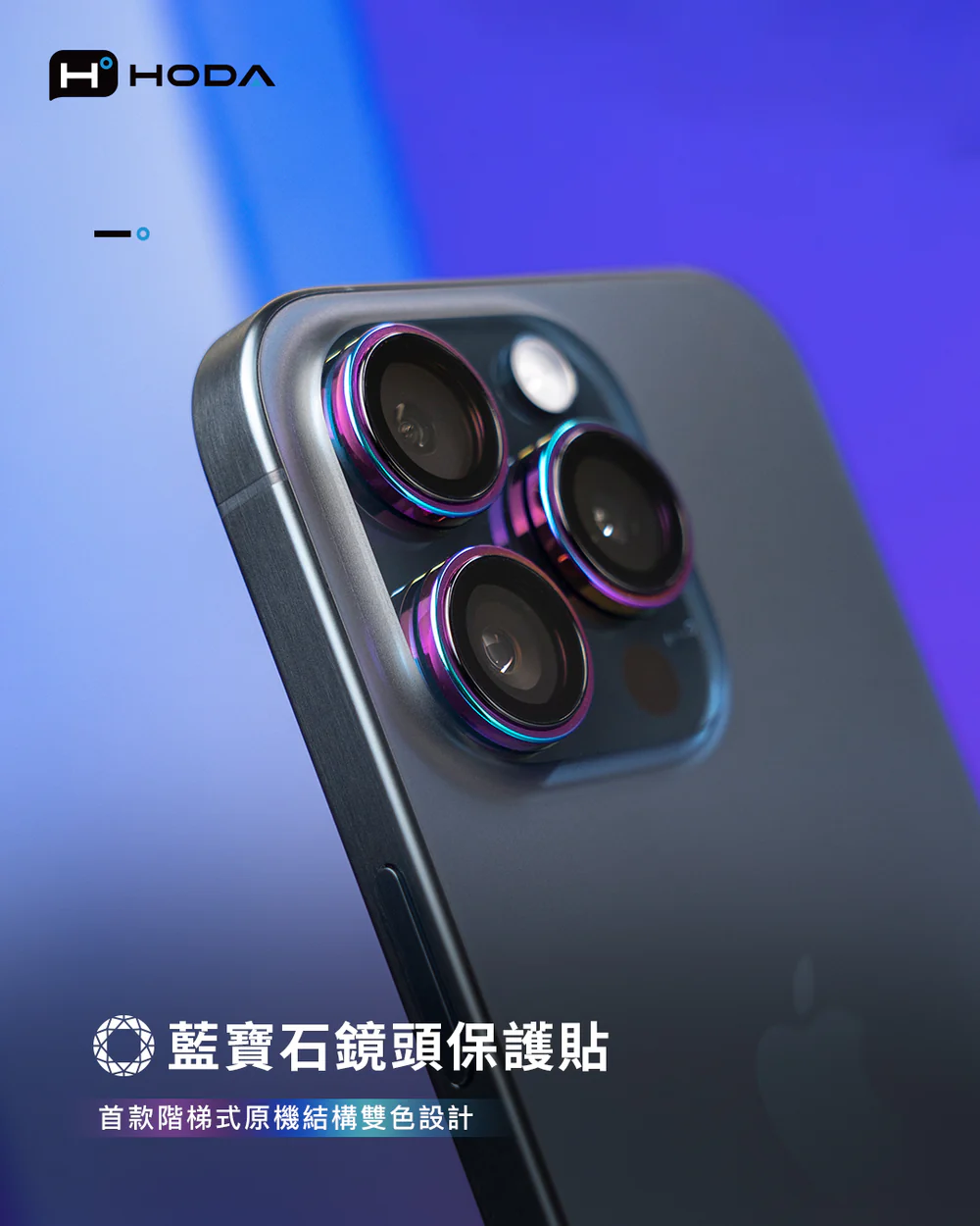hoda 藍寶石鏡頭保護貼 iPhone 13/12/11 系列適用,金屬框設計,燒鈦工藝