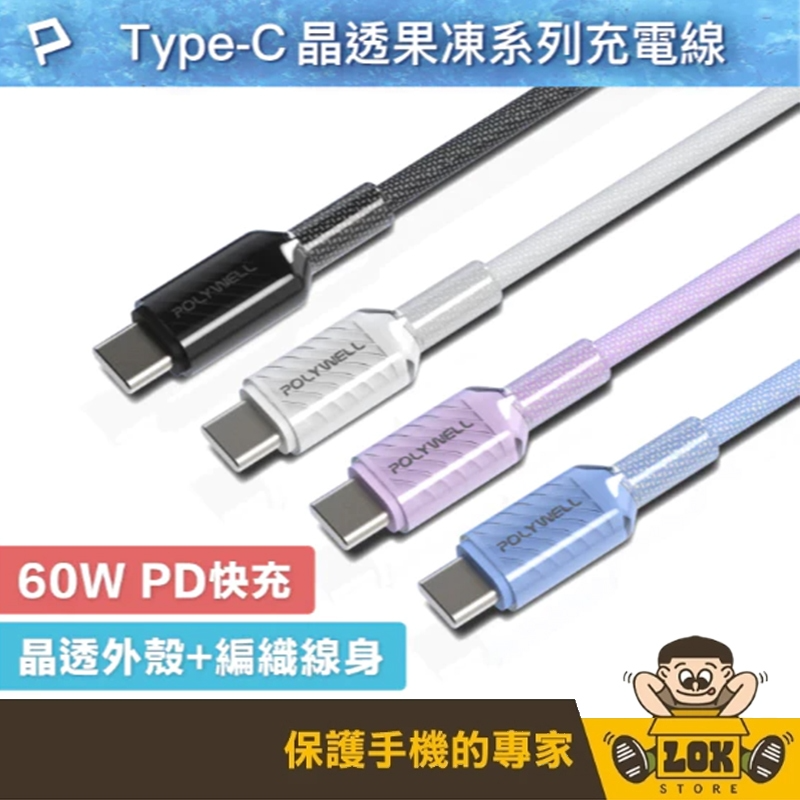 ◎ 產品名稱:POLYWELL Type-C To Type-C 公對公 晶透PD編織快充線
