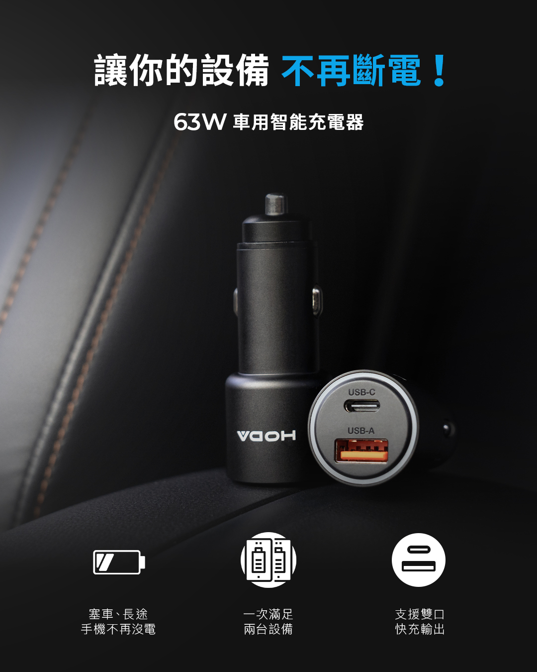 同時使用 USB-C / USB-A 接孔時,最高可為設備提供 63W(MAX) 的充電功率