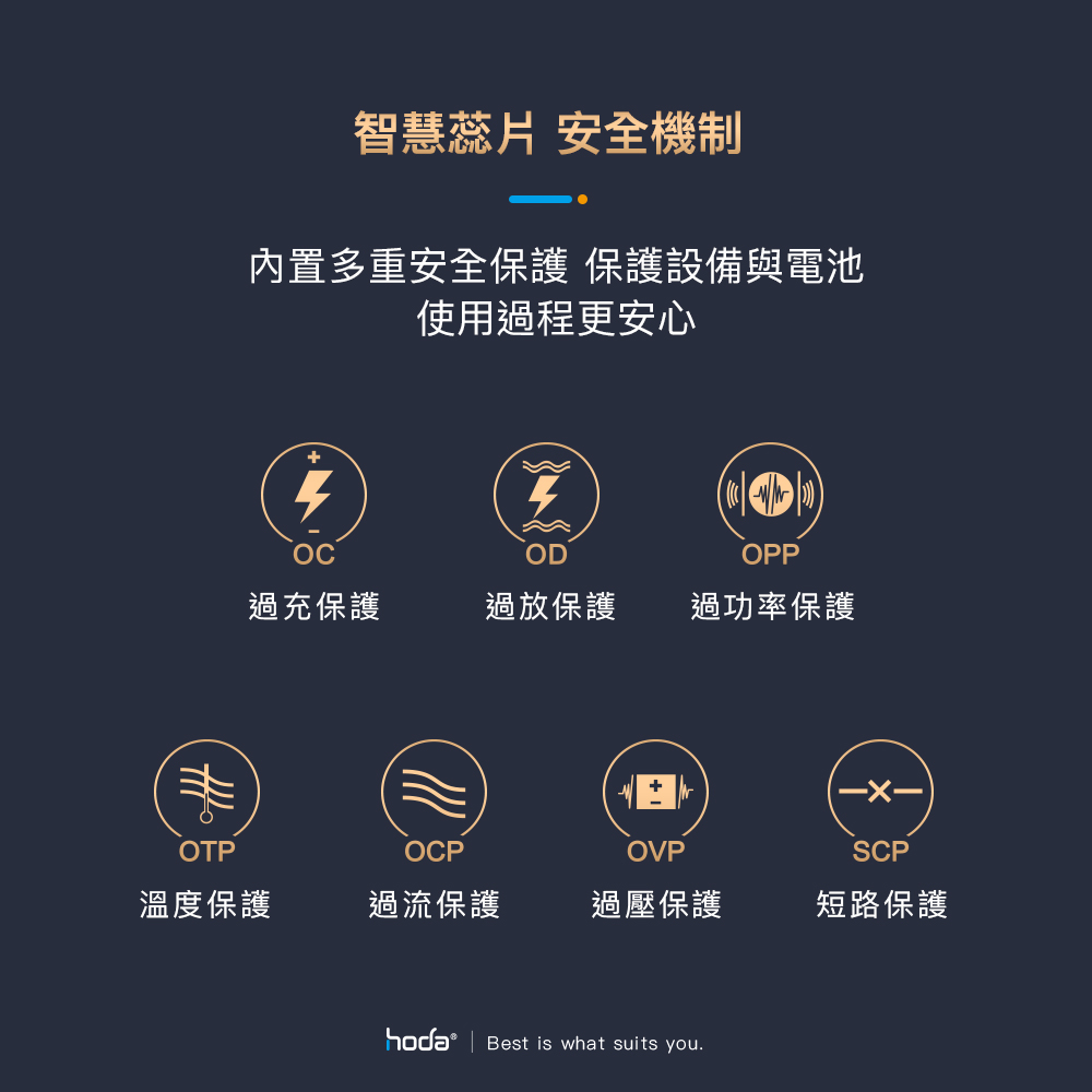 hoda充電器具有過電流和過熱的保護系統,電量充足後,充電器將自動停止充電,最大限度地保護您的設備。