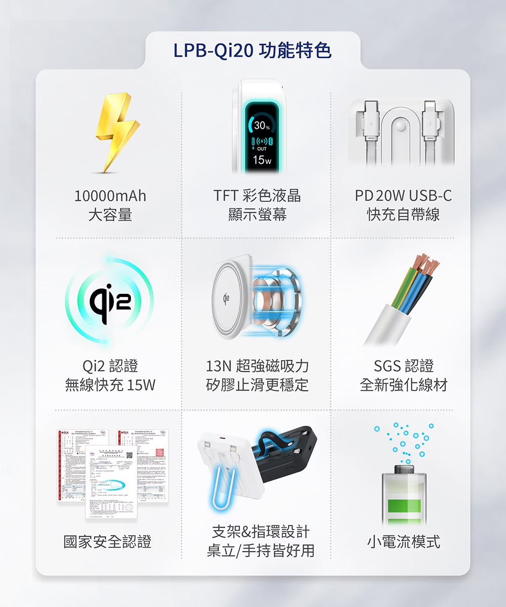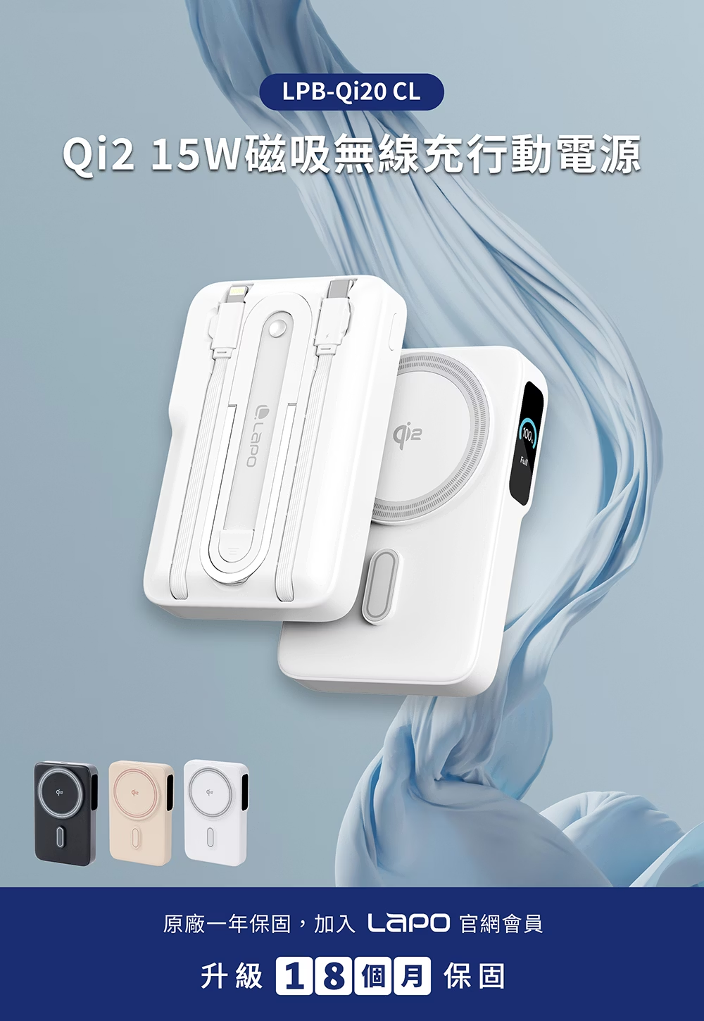 品名:【LaPO】Qi2 15W磁吸無線充行動電源 38.5Wh 快充 小電流 指環 手機支架 bsmi認證 LPB-Qi20