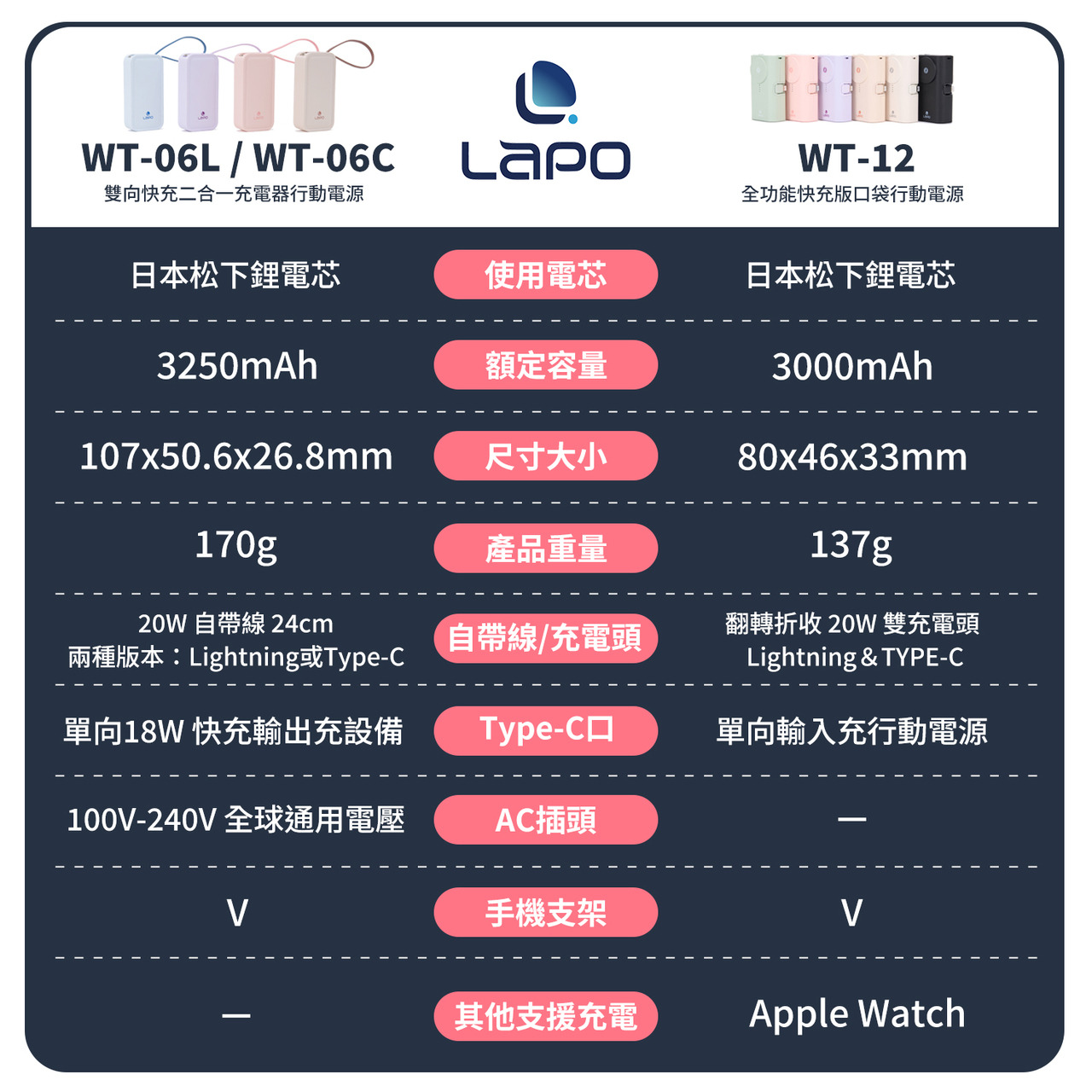 ◆ 24cm自帶線雙版本(WT-06C:Type-C接頭、WT-06L:Lightning接頭)