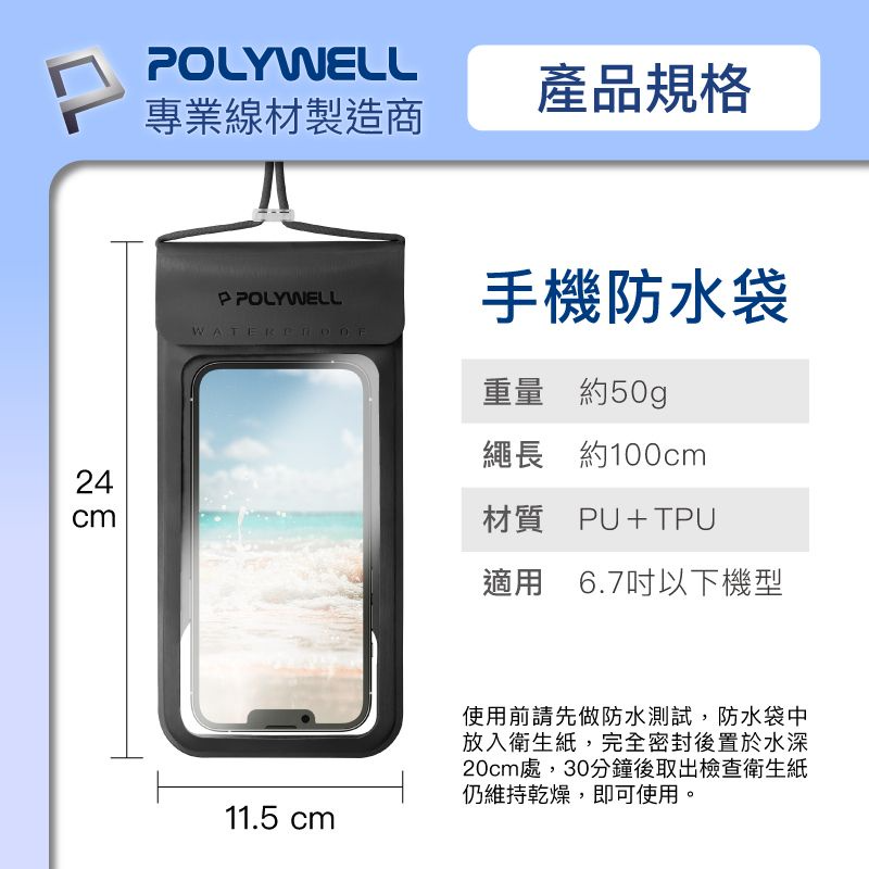 ◎ 產品: POLYWELL 時尚手機防水袋 7.2吋