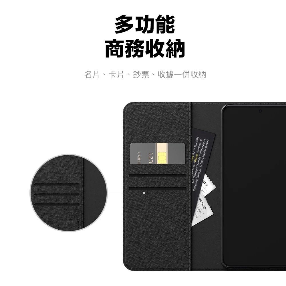 • 多功能收納:名片、卡片、鈔票、收據一次搞定,磁吸翻蓋防滑落