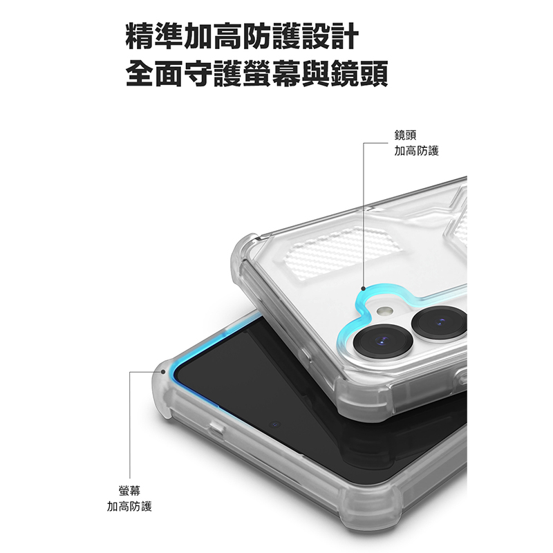 • 四角強化防護:TPU 緩衝邊框吸收衝擊,有效保護螢幕與鏡頭