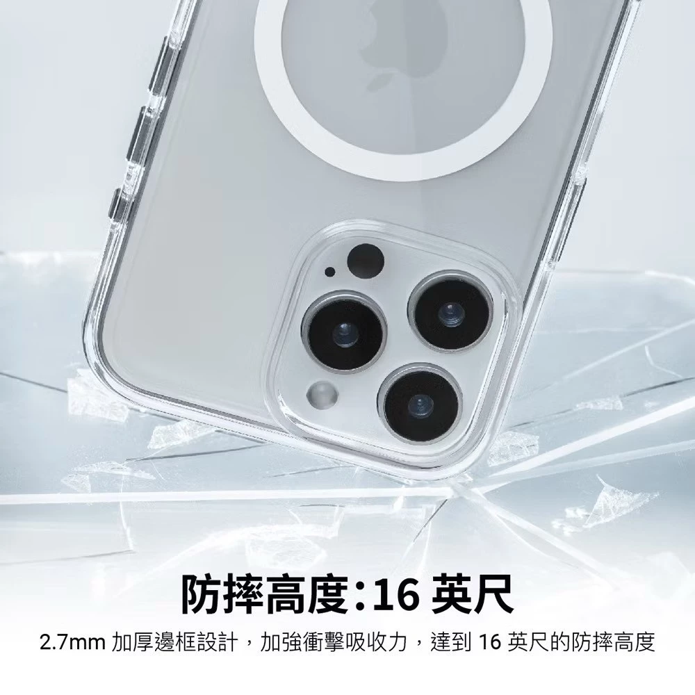 16英尺的軍規防摔設計提供手機全面防護,內置磁圈適配所有MagSafe配件。
