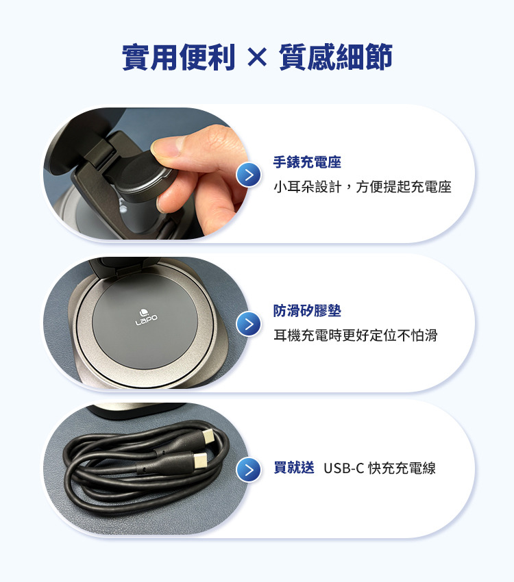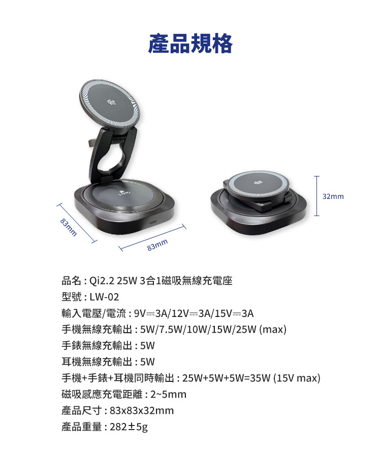 品名:【LaPO】 Qi2 25W 3合1磁吸無線充電座 LW-02