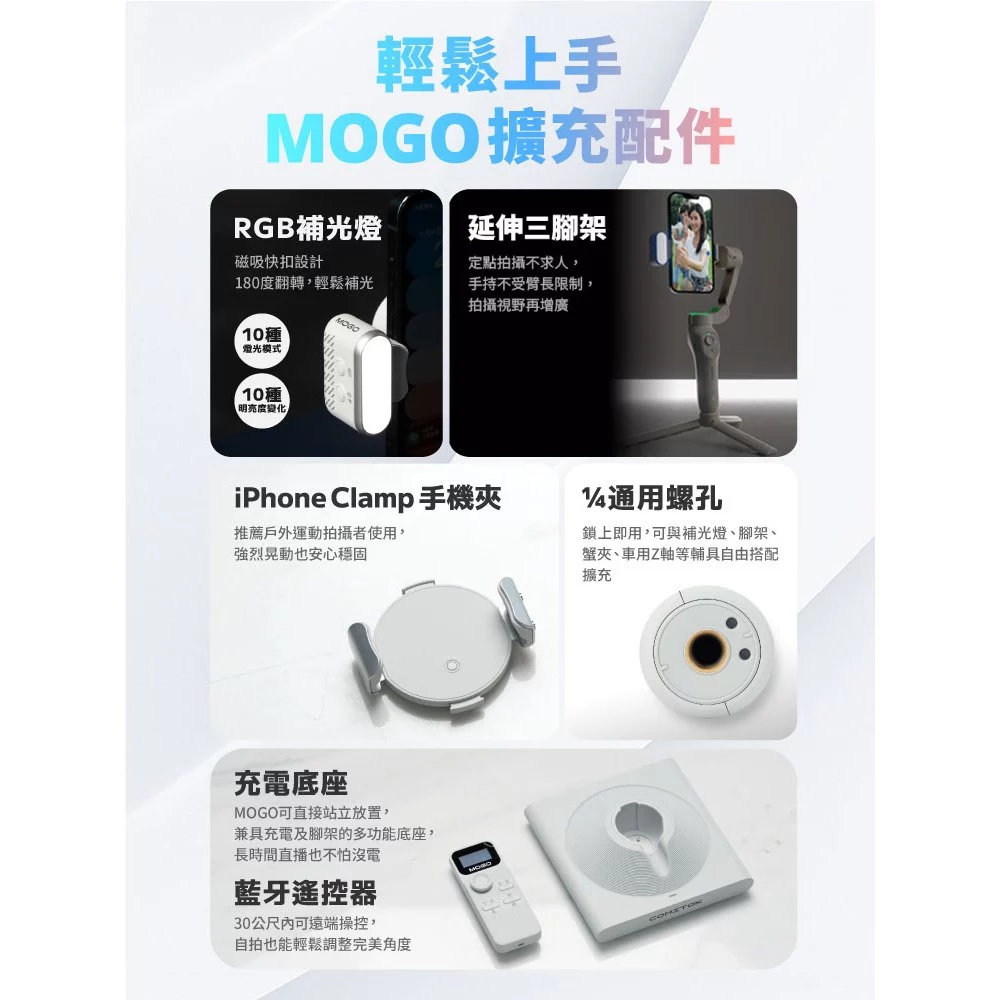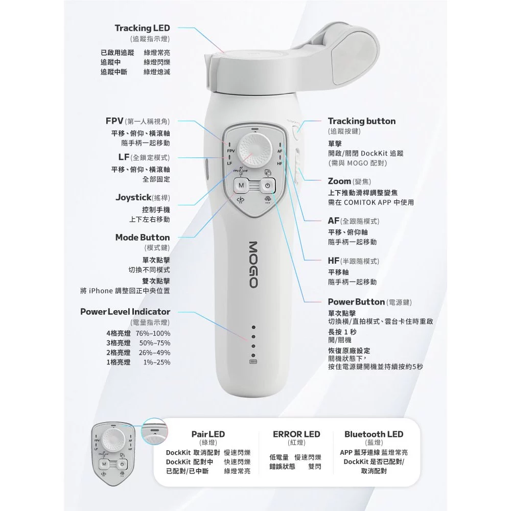 品名:【COMITOK】 MOGO 手機三軸穩定器 MFi Dockkit AI追蹤 防手震 摺疊收納