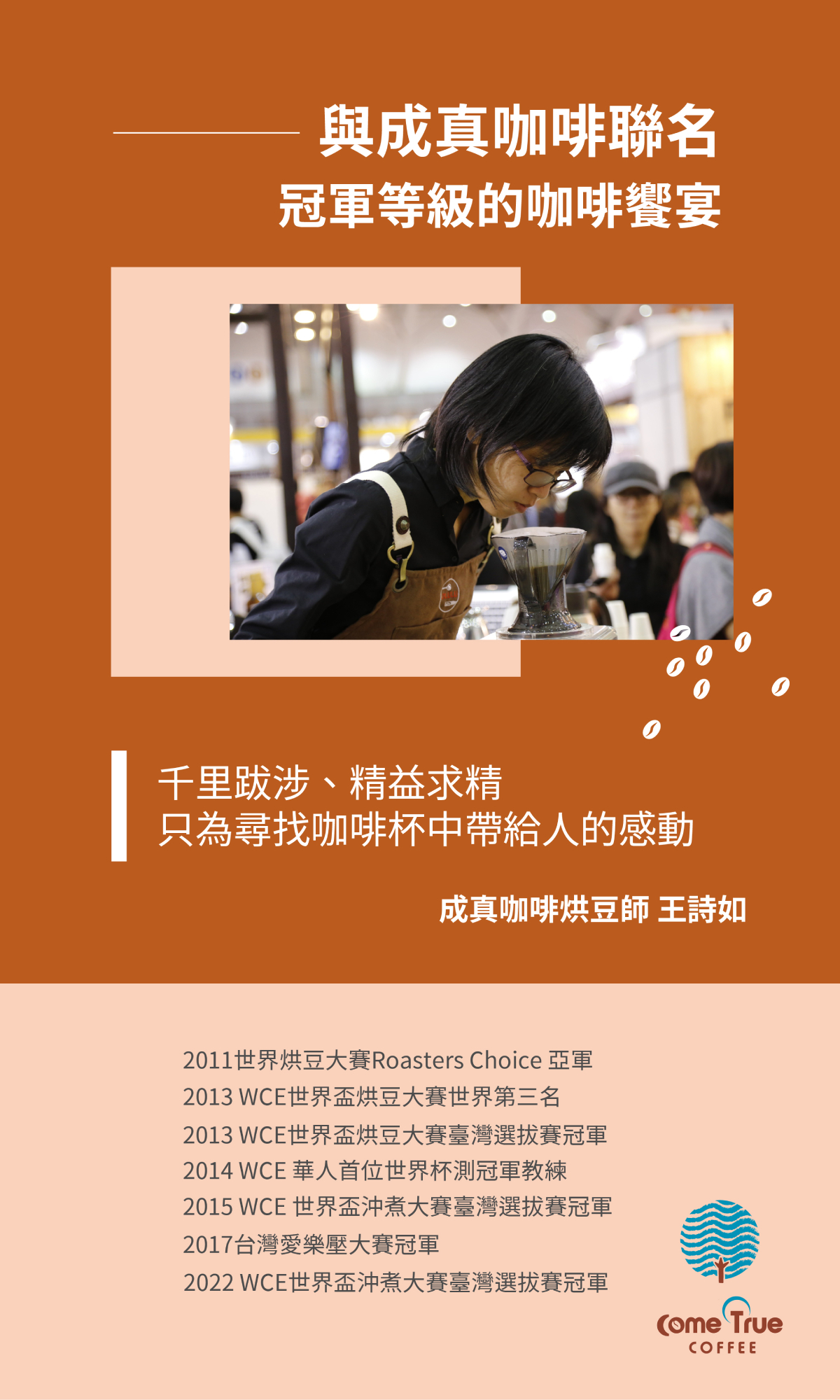 ※第一家咖啡B型企業並擁有冠軍咖啡師與「成真咖啡」,享受冠軍級精品美味