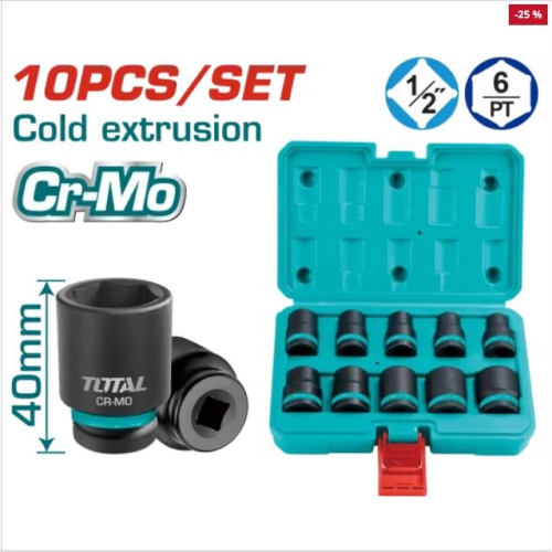 10 件 1/2"DR. 衝擊套筒套件材質:CrMo 尺寸:10.12.13.14.15.17.19.21.22.24mm