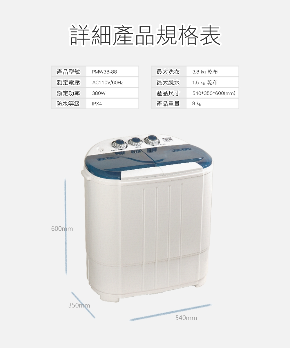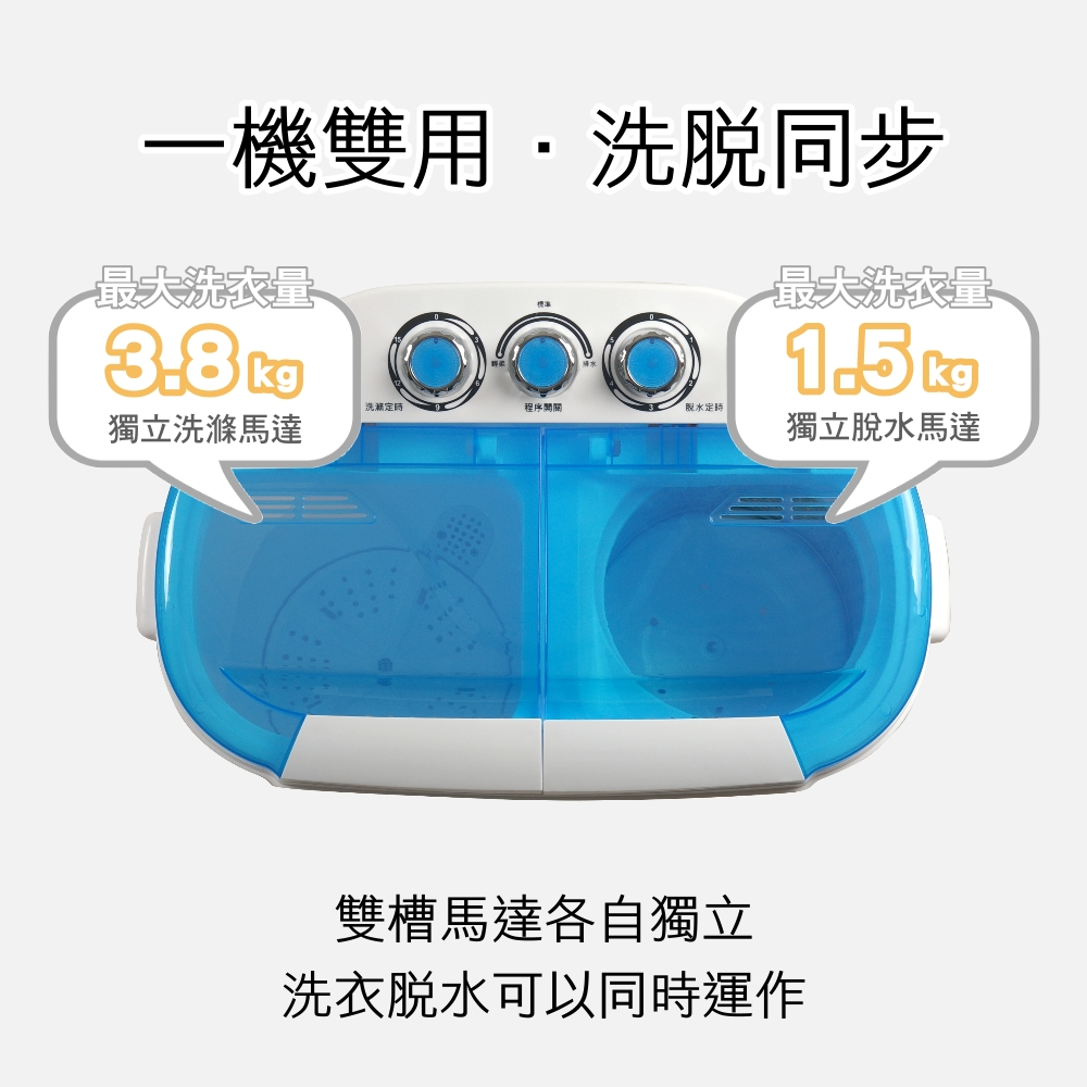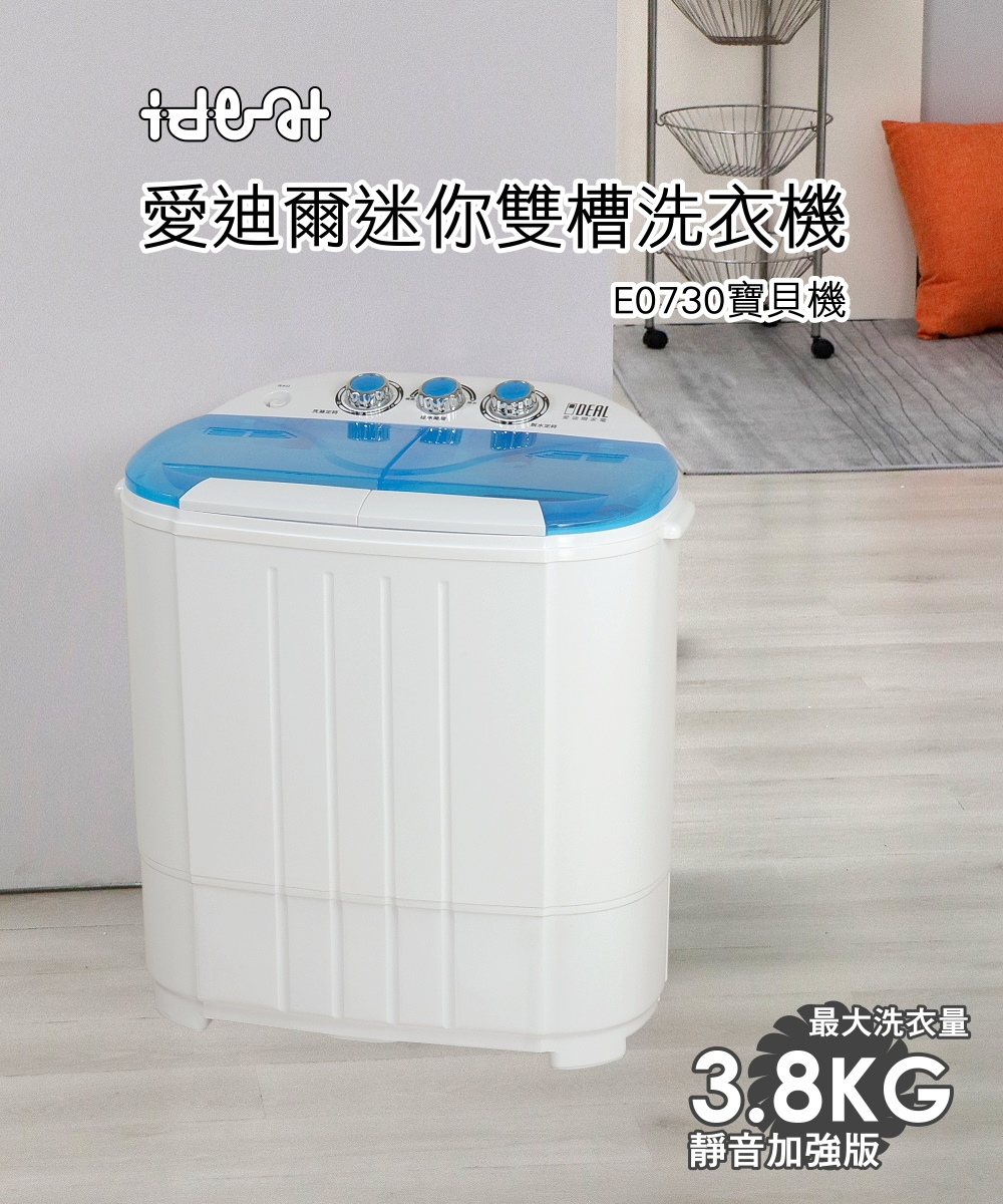 【IDEAL 愛迪爾】3.8公斤洗脫定頻直立式雙槽迷你洗衣機-寶貝機系列