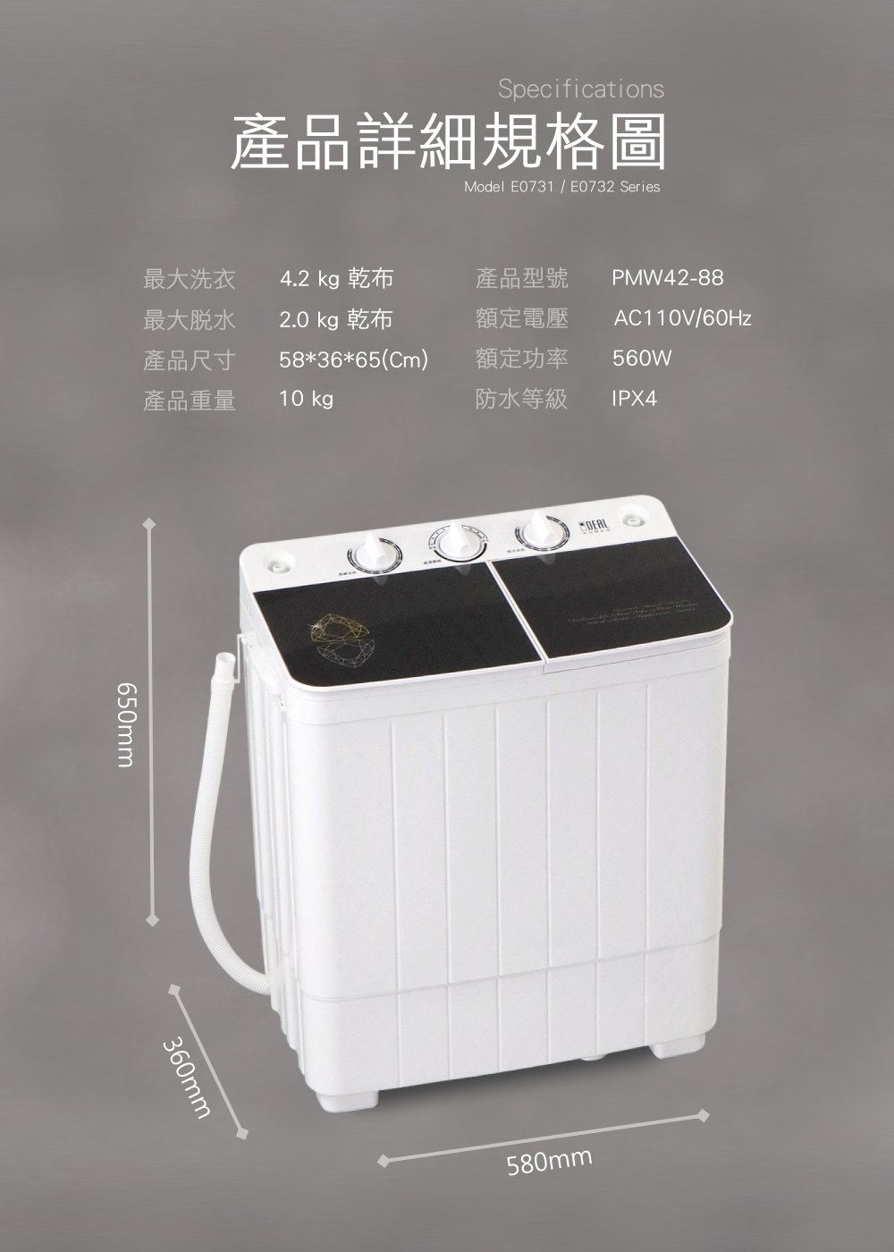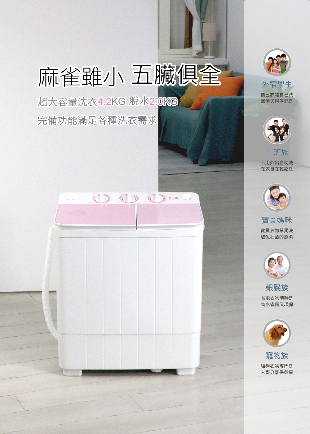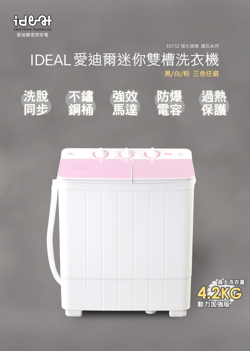 【IDEAL 愛迪爾】4.2公斤洗脫定頻直立式雙槽迷你洗衣機-玻璃上蓋系列