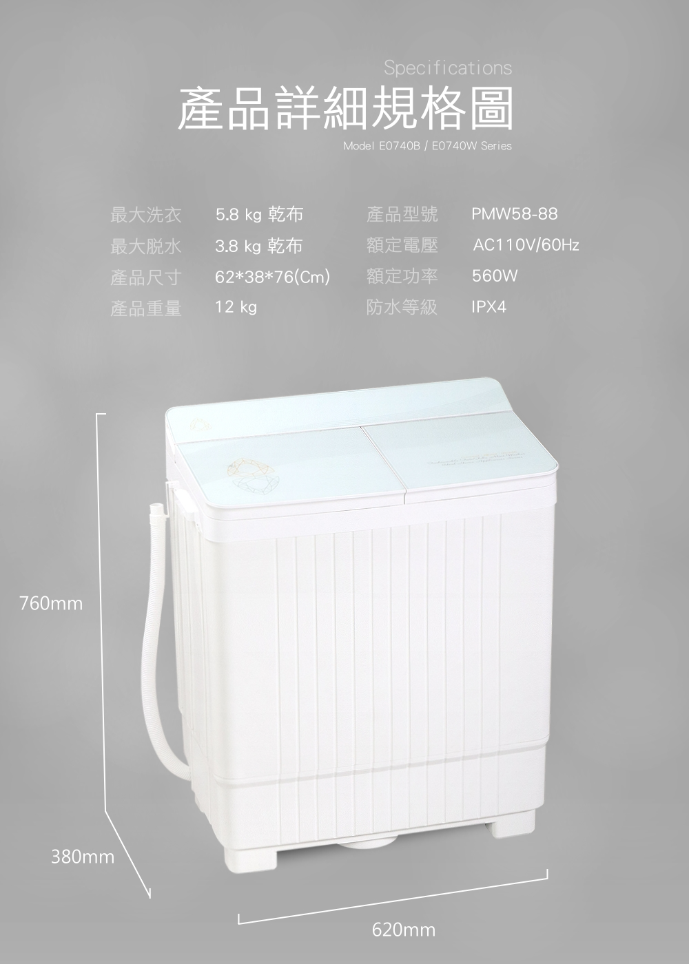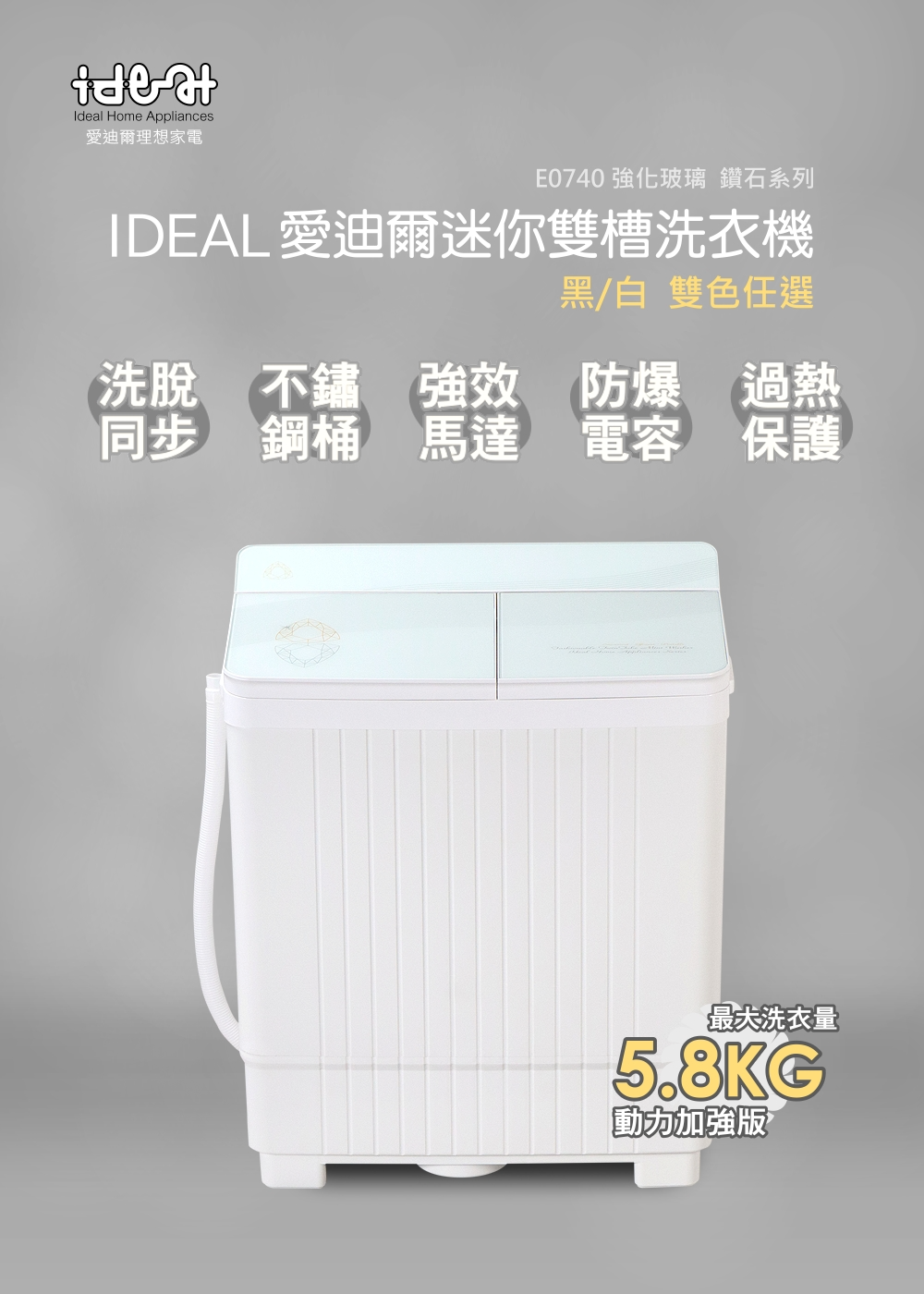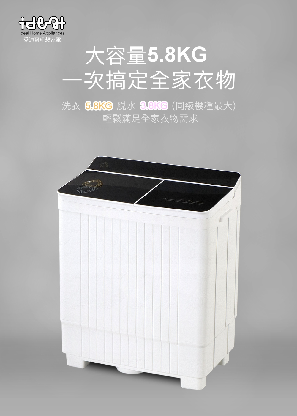 【IDEAL 愛迪爾】5.8公斤洗脫定頻直立式雙槽迷你洗衣機