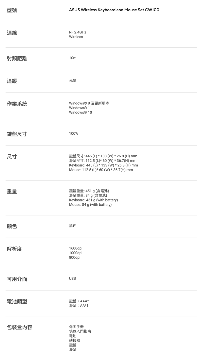 ASUS 華碩 無線鍵盤 滑鼠組 (CW100)