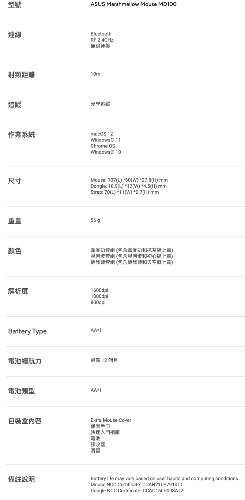 ASUS 華碩 Marshmallow Mouse MD100 棉花糖色系無線滑鼠 (燕麥奶)