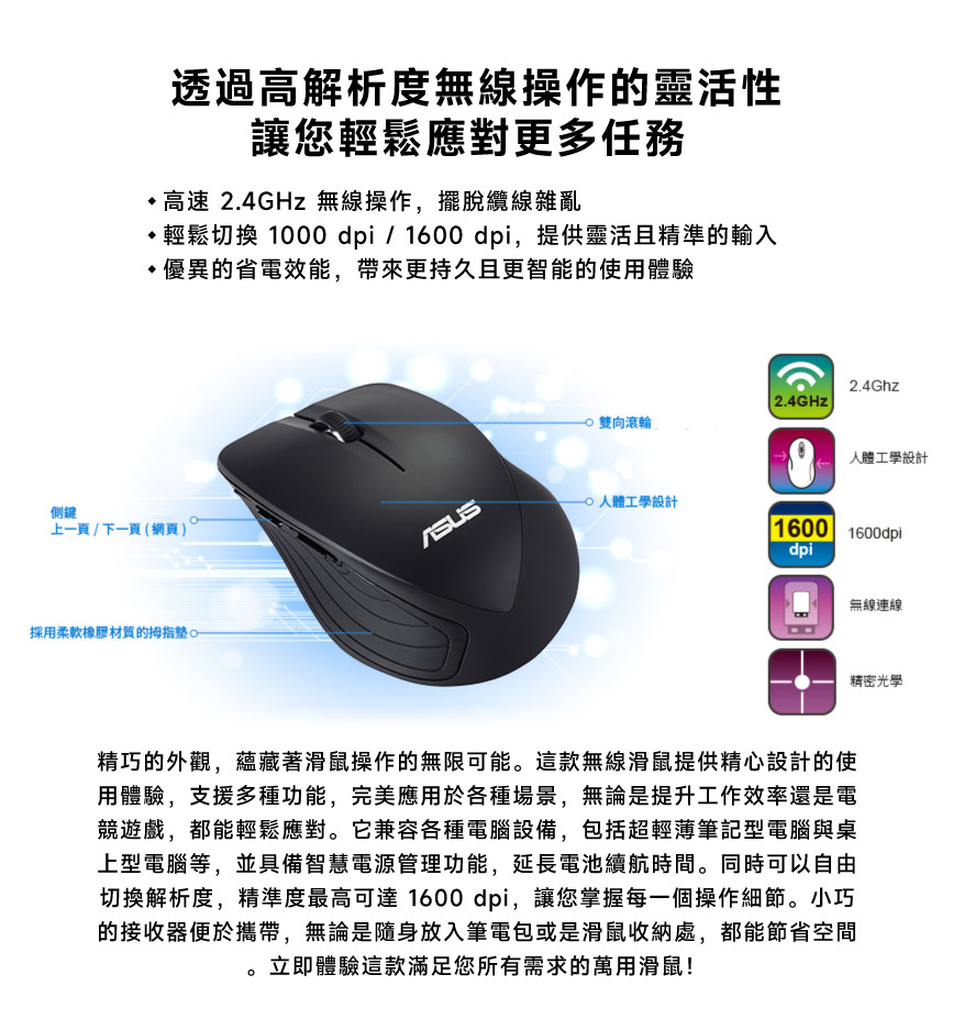 • 高速 2.4GHz 無線操作,擺脫纜線雜亂