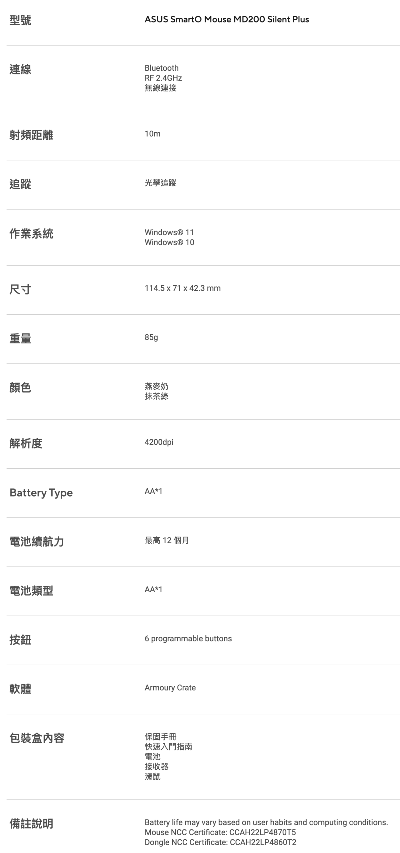 【兩色可選】ASUS 華碩 SmartO Mouse MD200 Silent Plus 靜音滑鼠