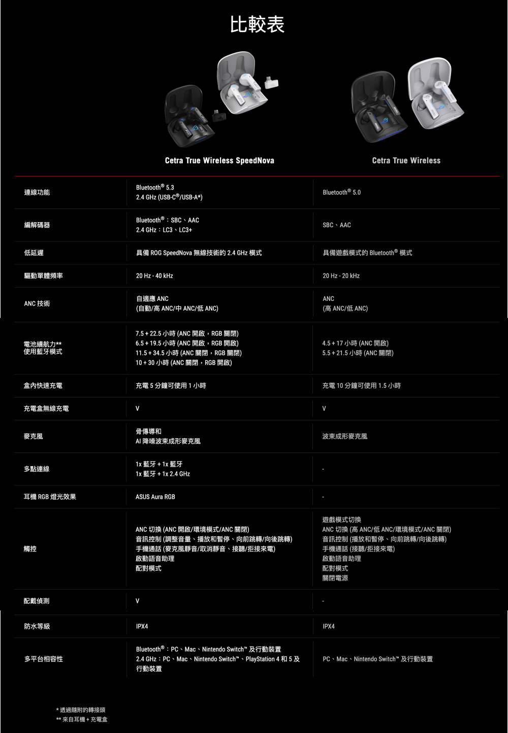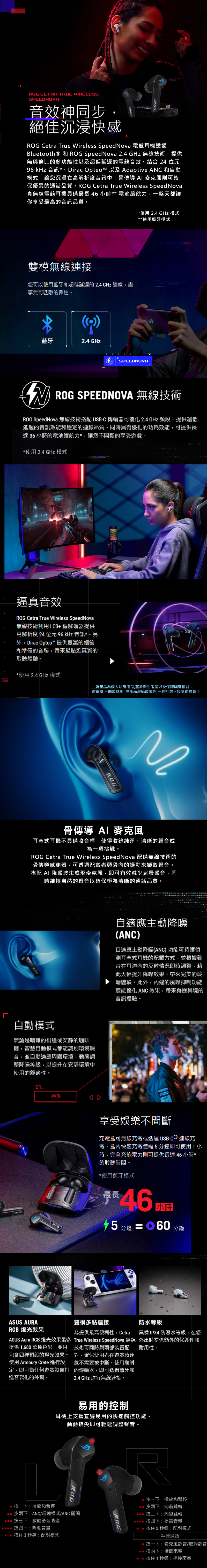 ASUS 華碩 ROG Cetra True Wireless SpeedNova 真無線藍牙耳機 骨傳導 AI麥克風