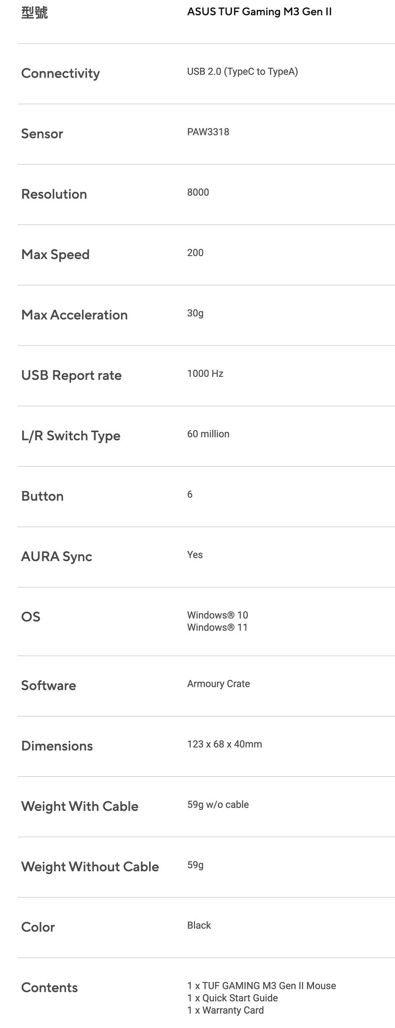 ASUS TUF Gaming M3 Gen II 輕量有線電競滑鼠