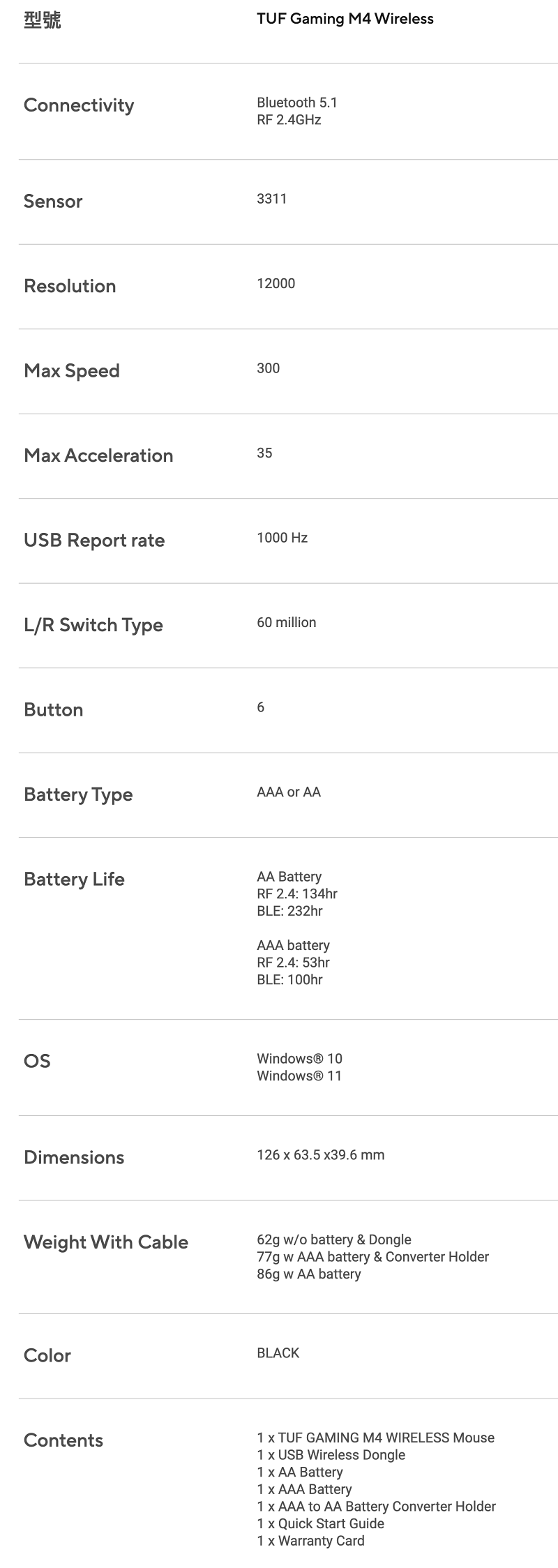 ASUS 華碩 TUF Gaming M4 Wireless 無線 雙模電競滑鼠