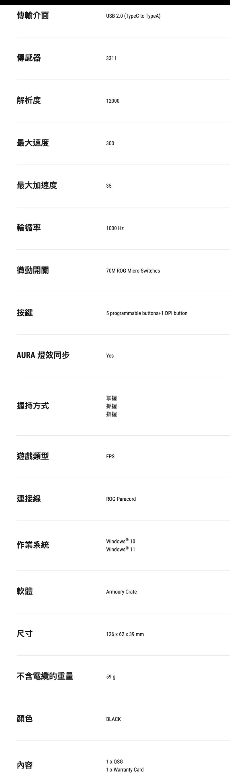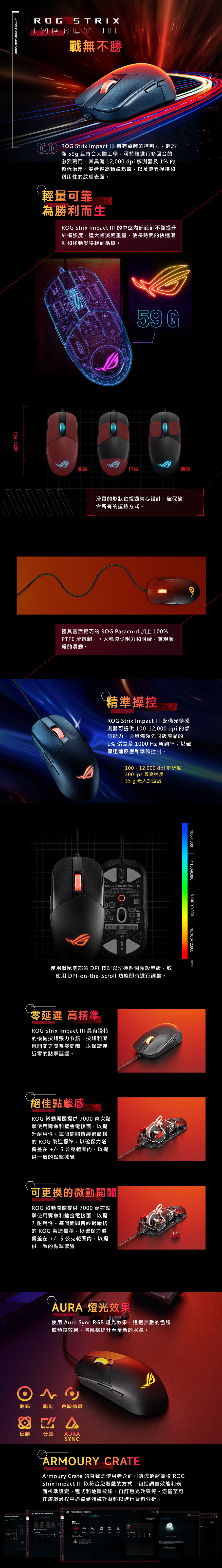 ASUS 華碩 ROG STRIX IMPACT III 輕量有線電競滑鼠