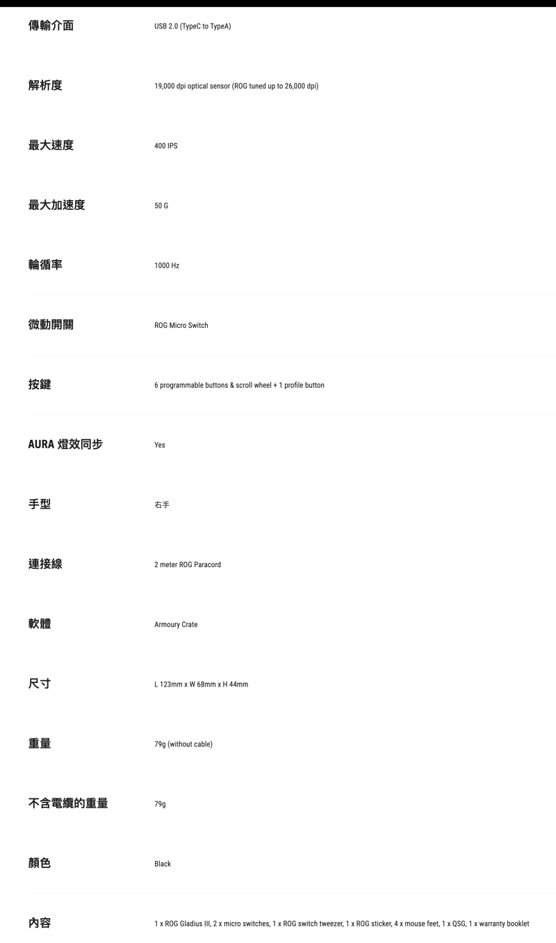 ASUS 華碩 ROG GLADIUS III 電競滑鼠 經典右手型電競滑鼠