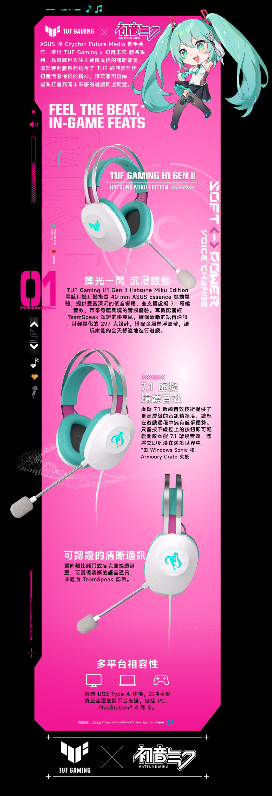 ASUS TUF Gaming H1 Gen II Hatsune Miku Edition 有線電競耳機 初音聯名