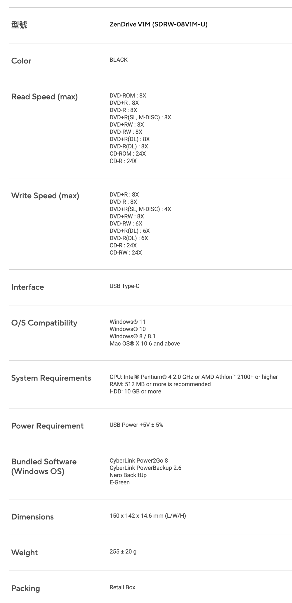 ASUS ZenDrive V1M (SDRW-08V1M-U) 外接式 DVD 燒錄機