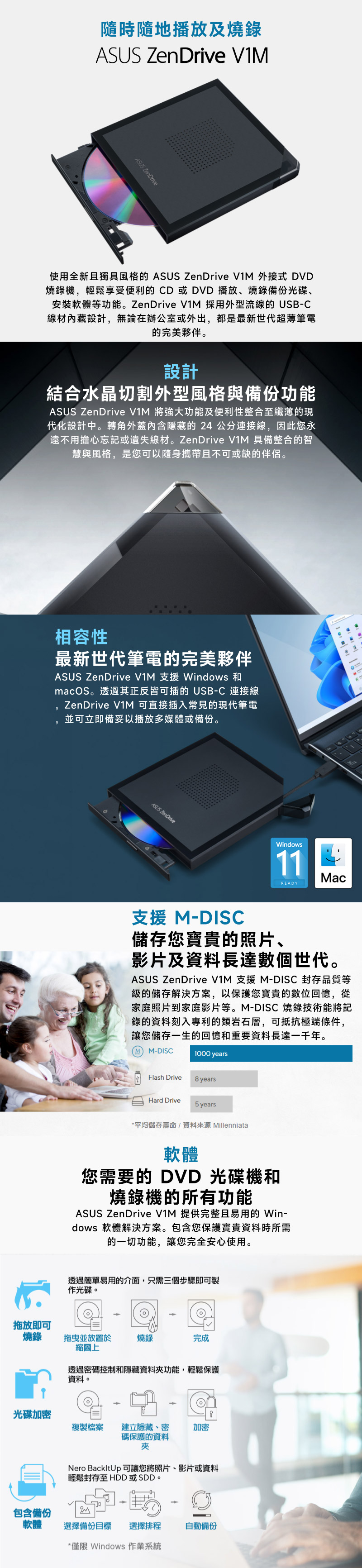 支援 M-DISC:儲存您寶貴的照片、影片及資料長達一千年。