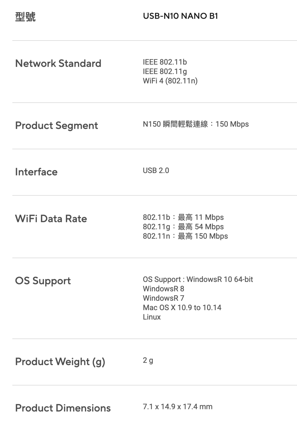 華碩 ASUS USB-N10 nano B1 USB無線網卡(150M)