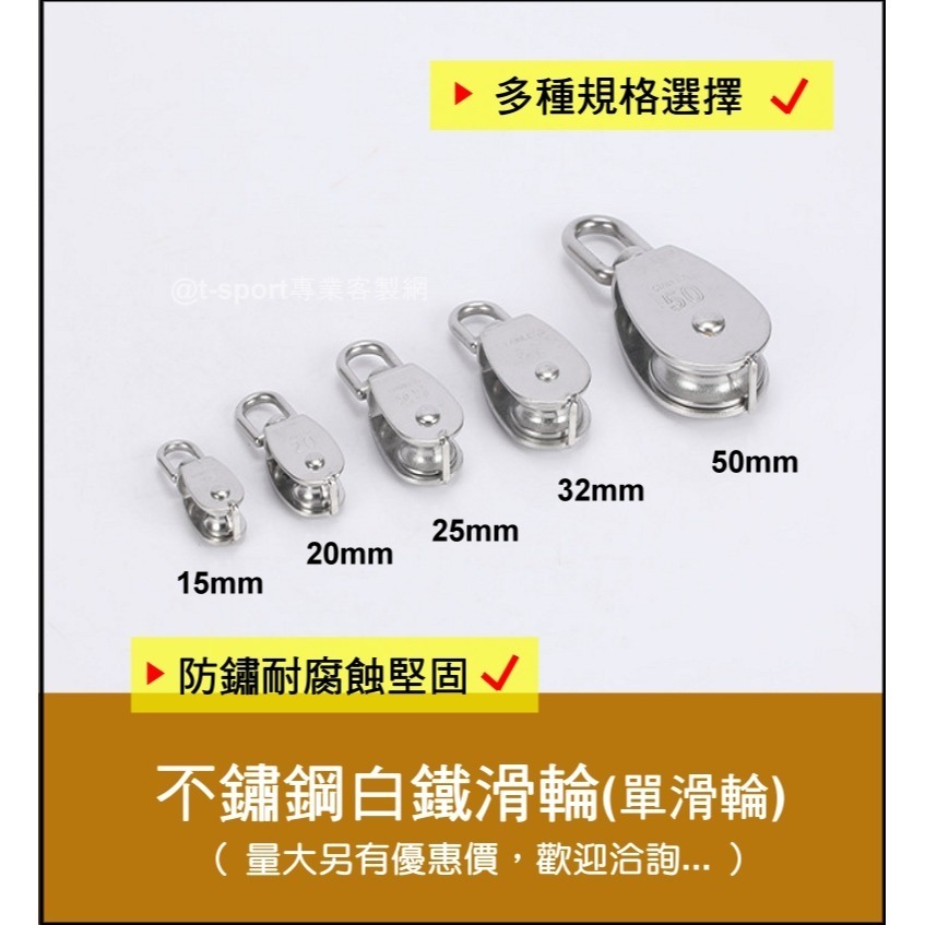 【隔日出貨】(防鏽防腐蝕/堅固耐用)全304不銹鋼滑輪組: 白鐵單滑輪 雙滑輪 滑車 搭配鋼索 繩索 豆滑車 帆布 鐵門拖引 旗桿滑輪