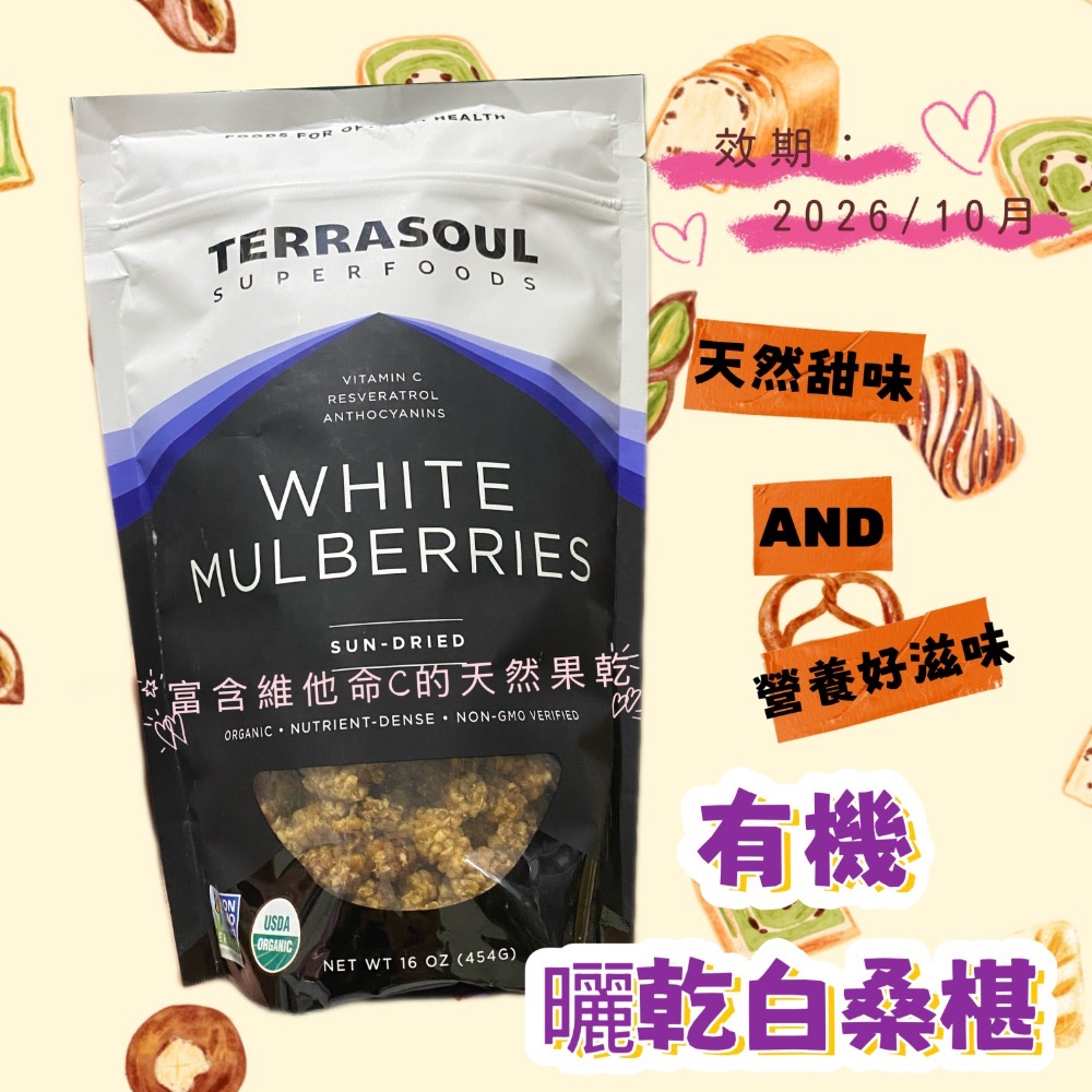 無麩質、無基因改造、純素的白桑椹乾