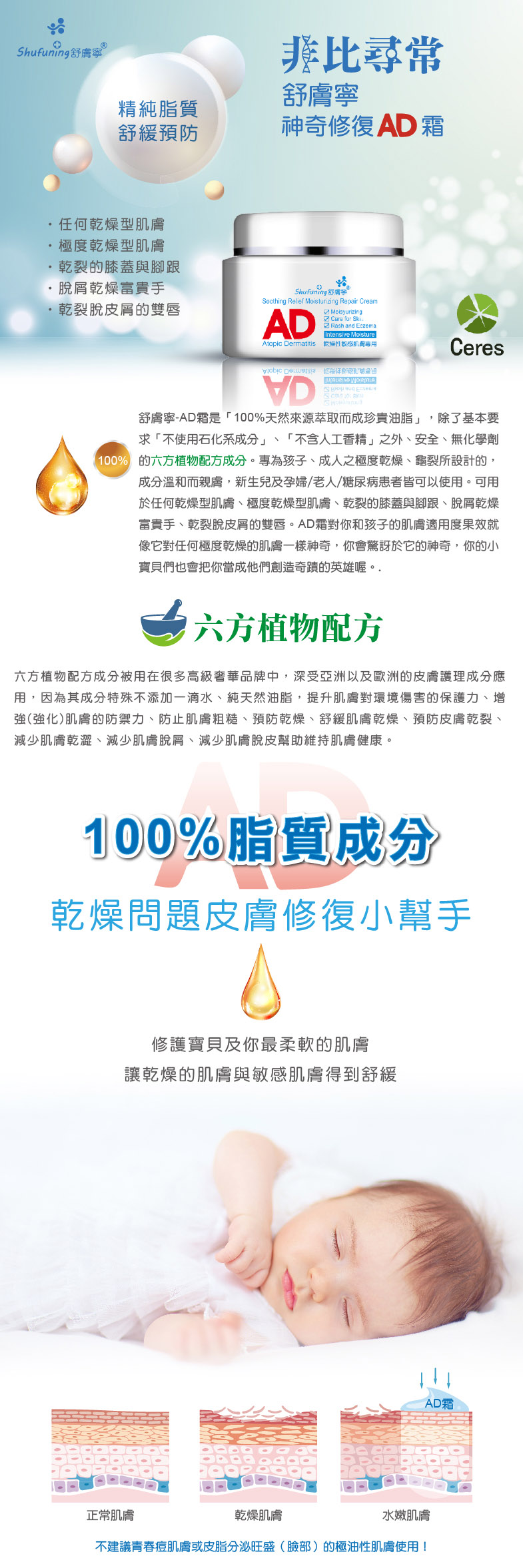 是100%珍貴油脂,除了基本要求使用草本植物配方、安全、無化學劑的六方植物配方成分。專為孩子、成人之極度乾燥、龜裂所設計的成分溫和而安全,新生兒及孕婦皆可以使用。可用於任何乾燥型肌膚、極度乾燥型肌膚、乾裂的膝蓋與腳跟、脫屑乾燥富貴手。此乳霜對你和孩子的肌膚適用度果效就像它對任何極度乾燥的肌膚一樣,你會驚訝於它的滋潤修復度,你的小寶貝們也會把你當成他們創造奇蹟的英雄喔。