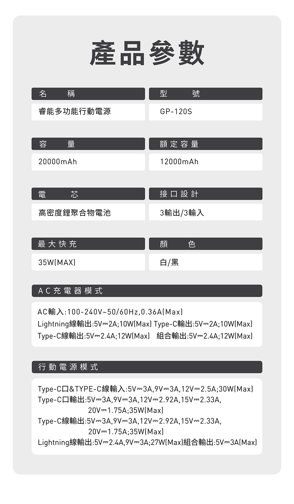 20000mAh 超大容量、多功能設計,滿足日常與旅途所有充電需求,讓您時刻保持最佳狀態!
