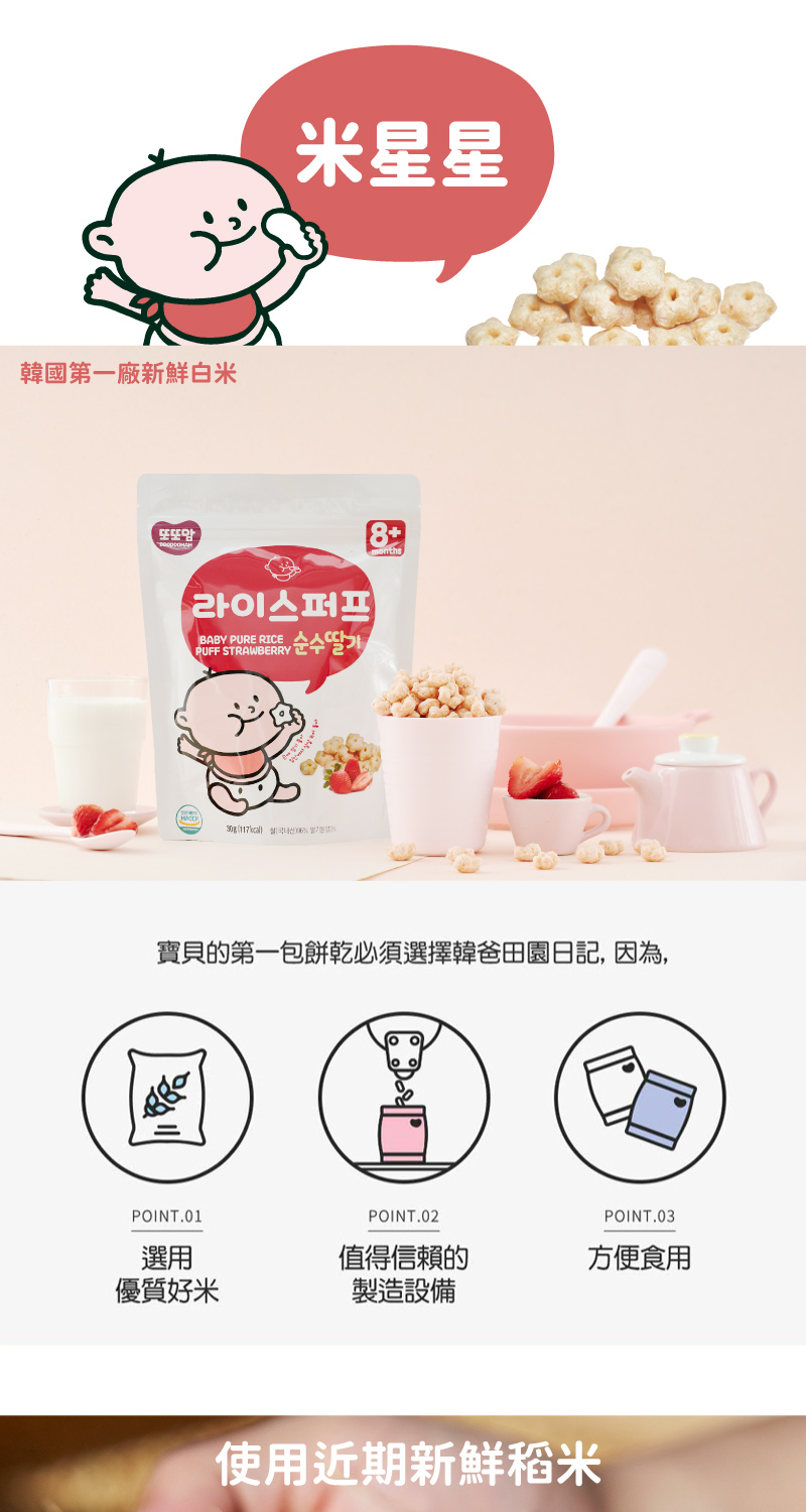 成分:米、草莓粉、優格粉(脫脂牛奶、乳酸菌)