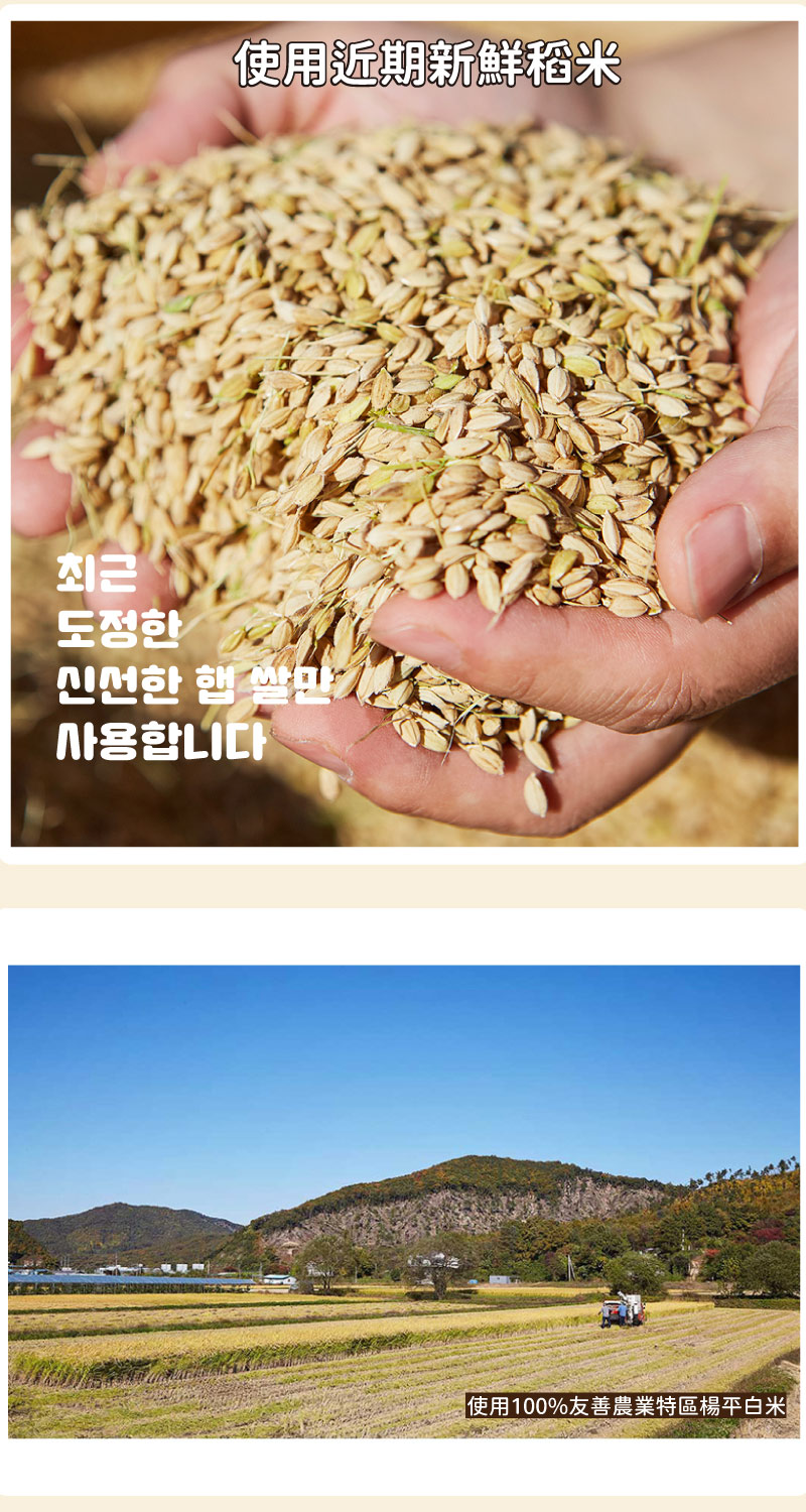 全使用韓國楊平出產白米
