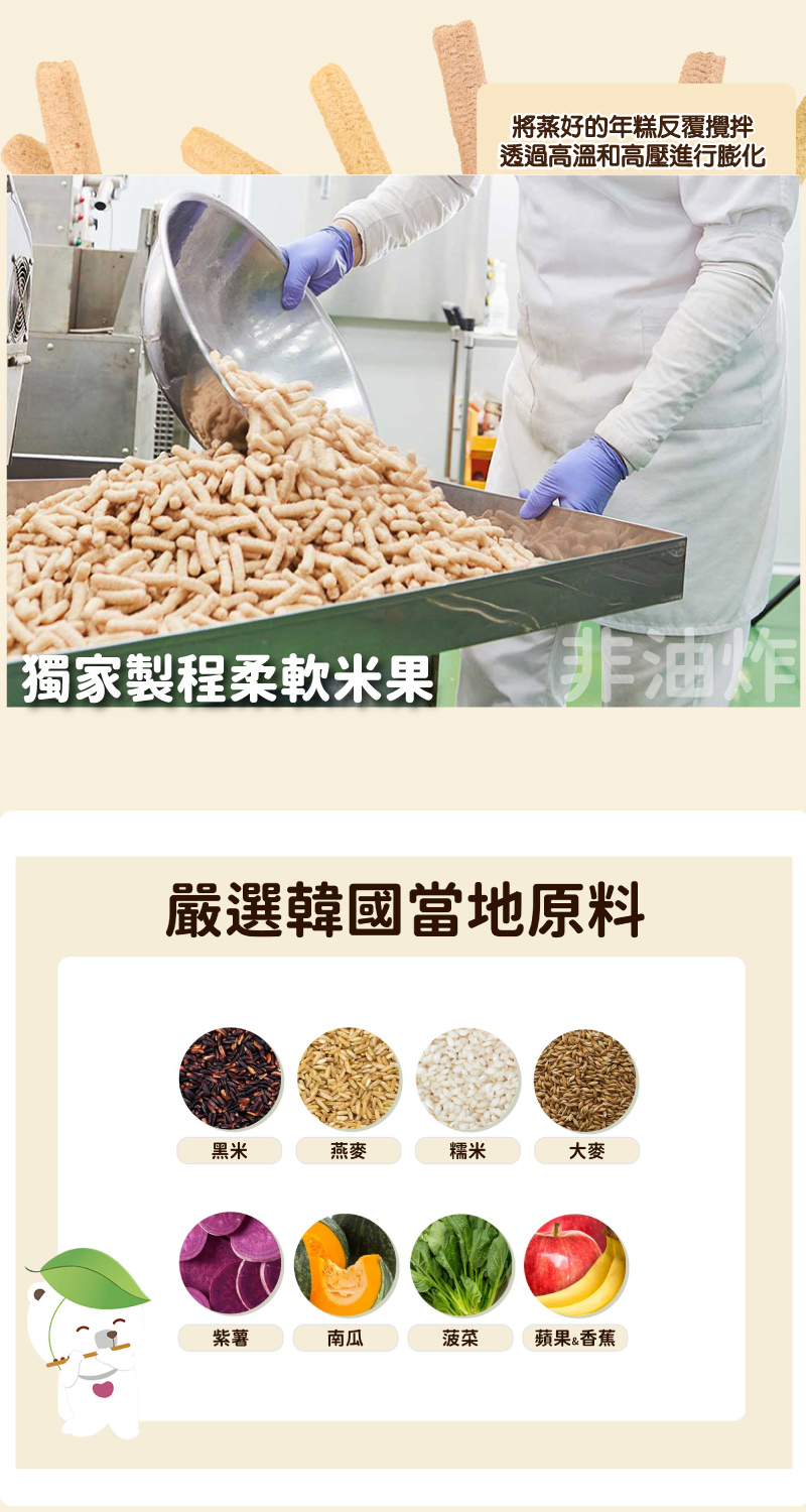 無油炸,透過高溫和高壓進行膨化製成