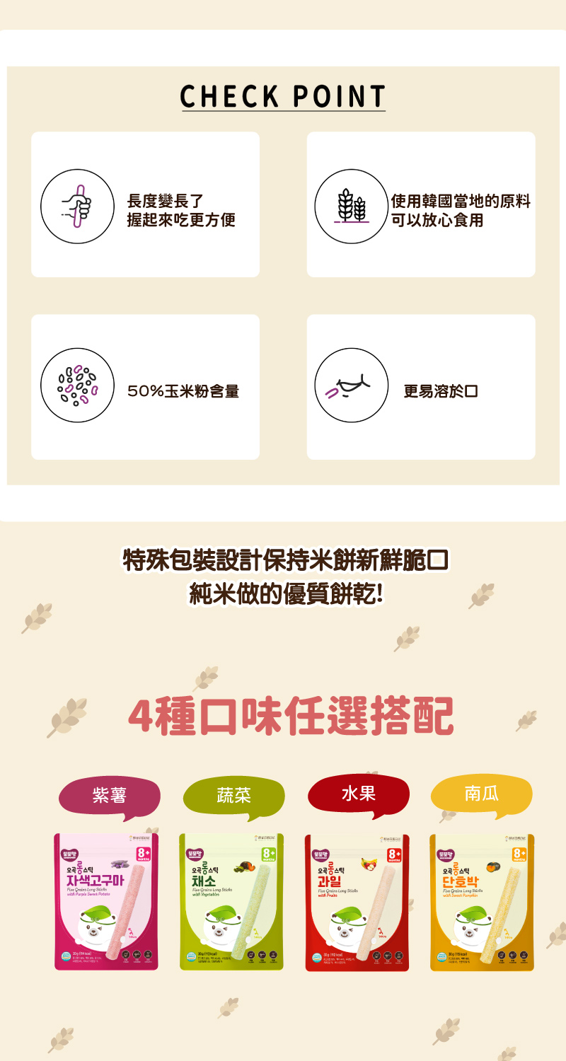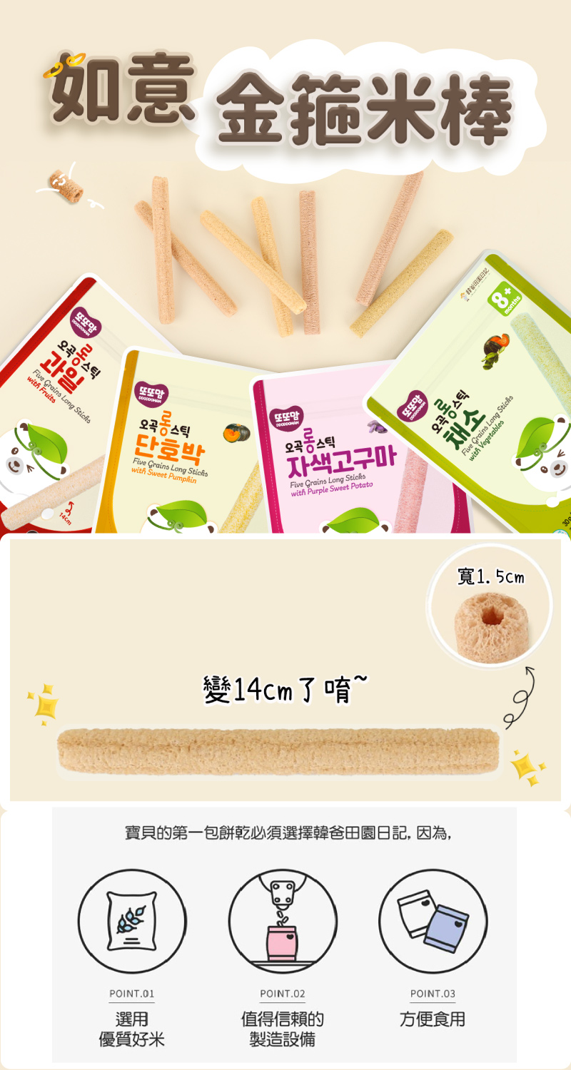 五穀米製成,超長14CM,讓父母享受短暫的放鬆時刻。