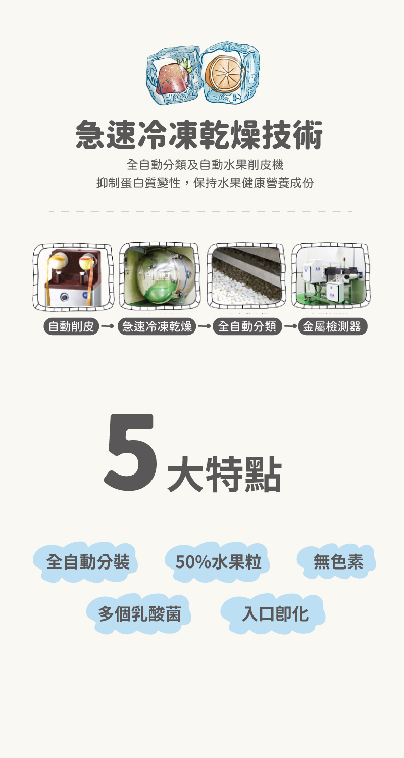 注意事項:請避免光線直照,於常溫保管。因屬於急速凍結乾燥食品,請避免放置於潮濕環境。