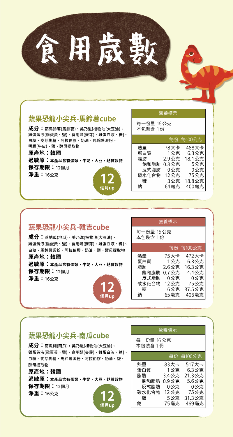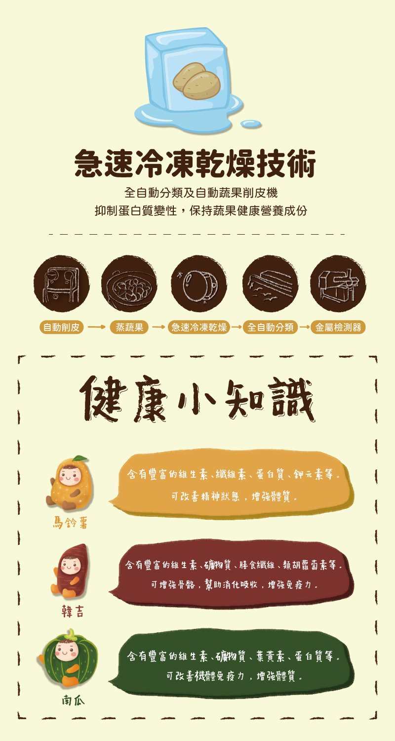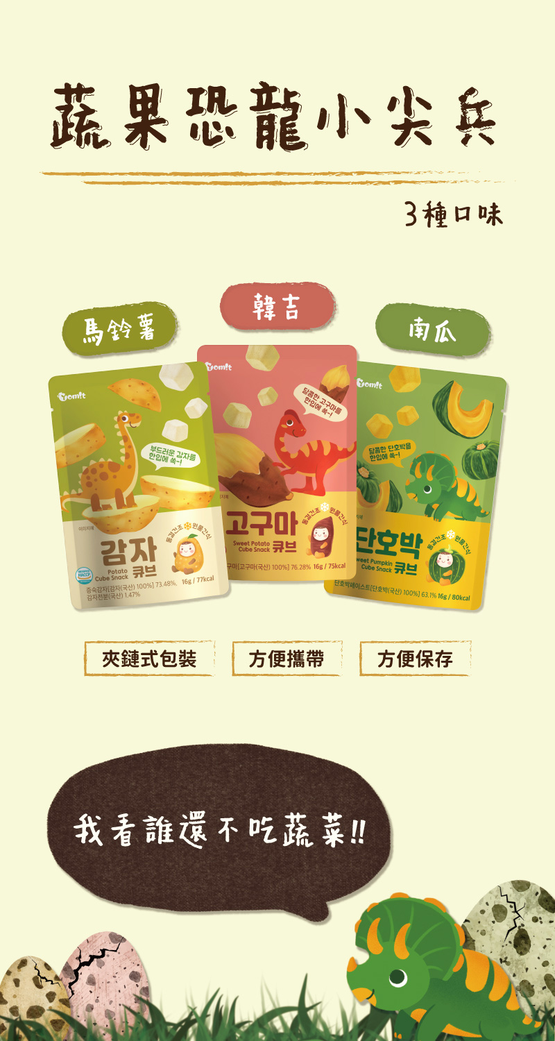 「 馬鈴薯 」、「 韓吉 」、「 南瓜 」三種蔬菜cube 幫助小朋友們頭好壯壯!
