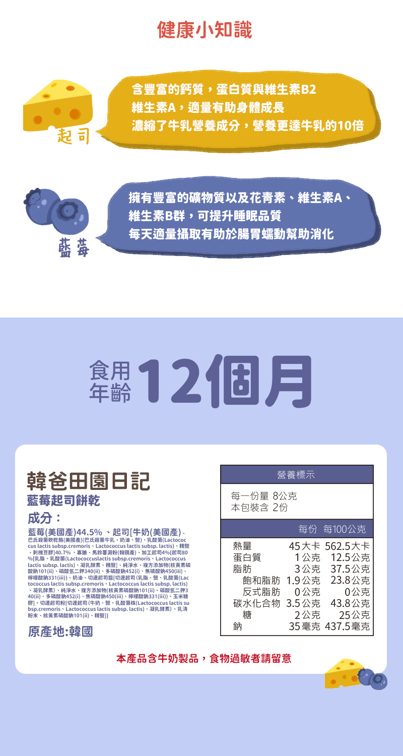 【韓爸田園日記】起司餅乾 草莓 藍莓 12個月以上