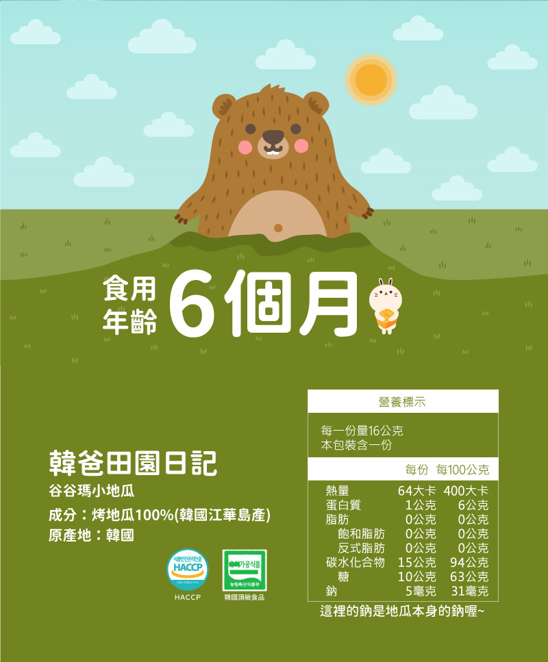 【韓爸田園日記】谷谷瑪小地瓜 16g/包 (6個月以上可食用)
