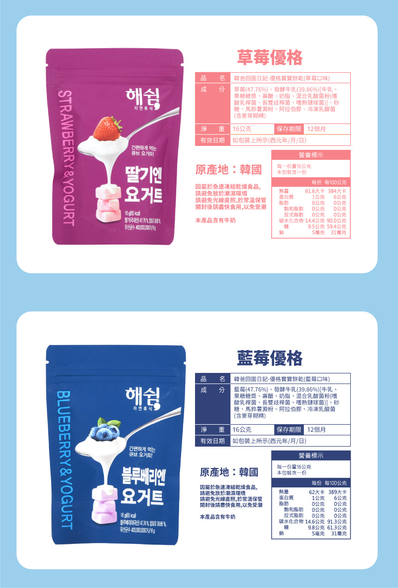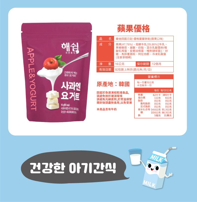 【韓爸田園日記】優格寶寶餅乾系列 16g/包