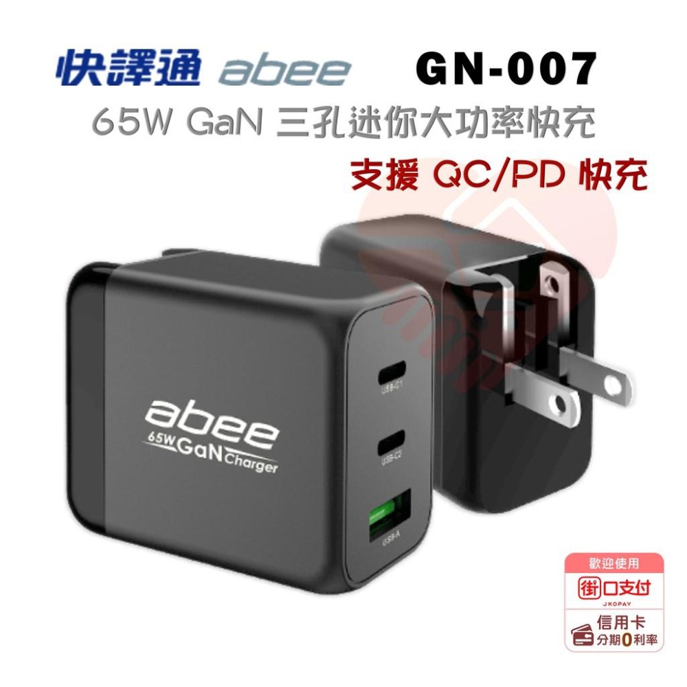 Type-C: 3.3-11V 3A, 5V 3A, 9V 3A, 12V 3A, 15V 3A, 20V 3.25A (Max. 最大65W)