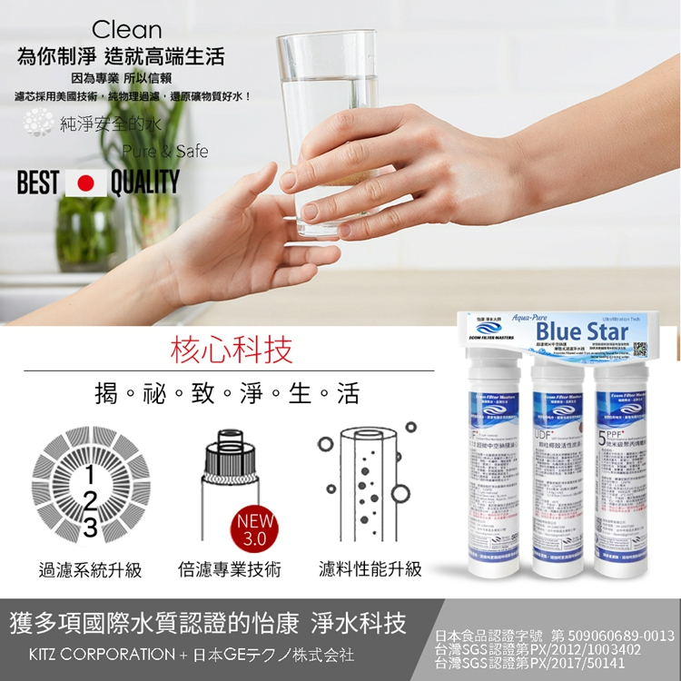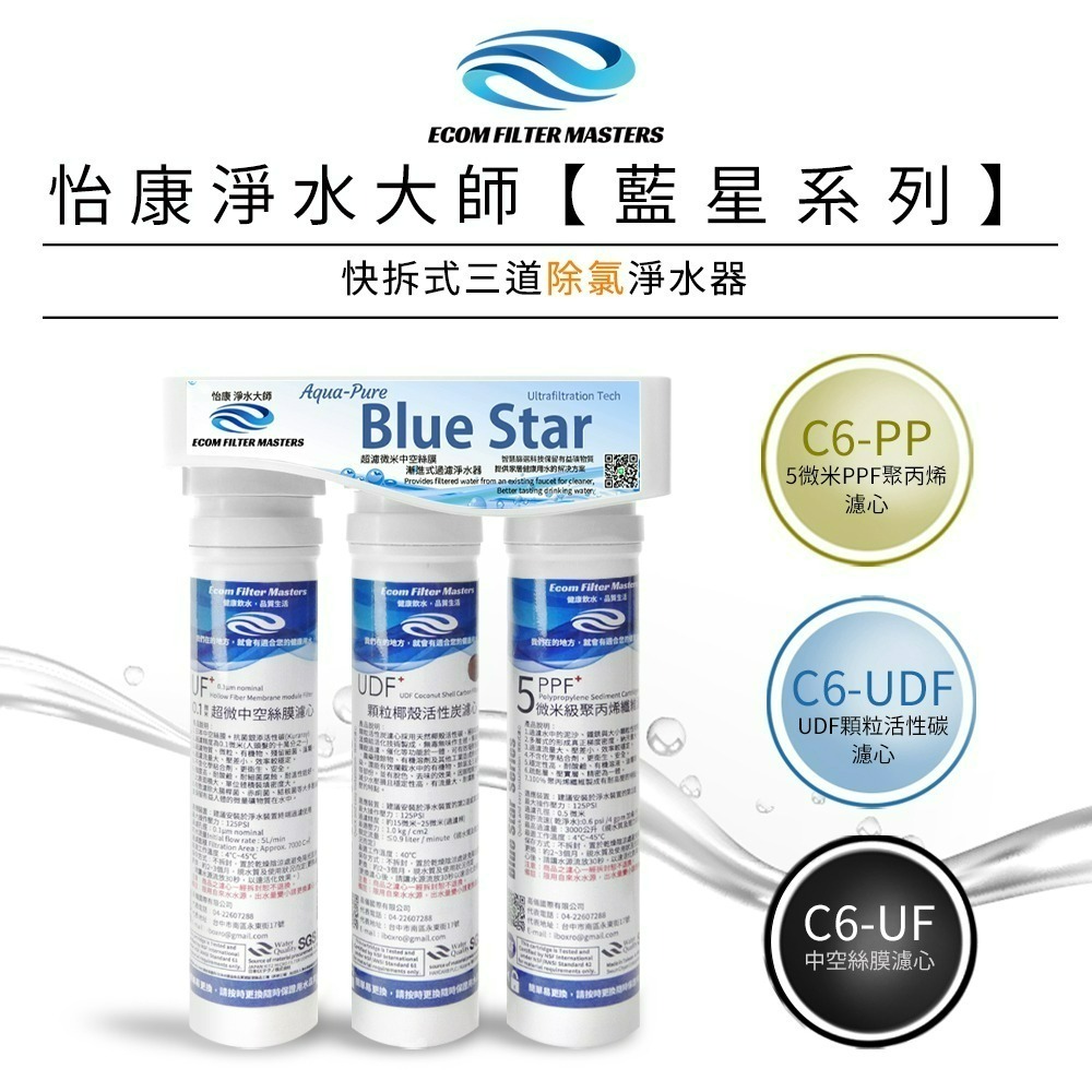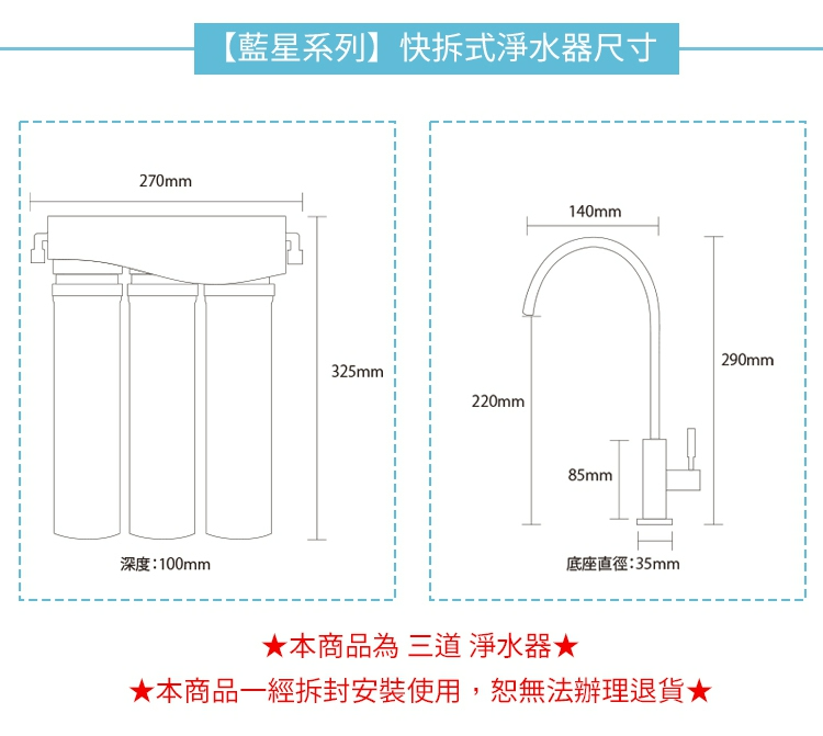 ★本商品為藍星系列【廚上型】快拆式三道 除氯 淨水器★