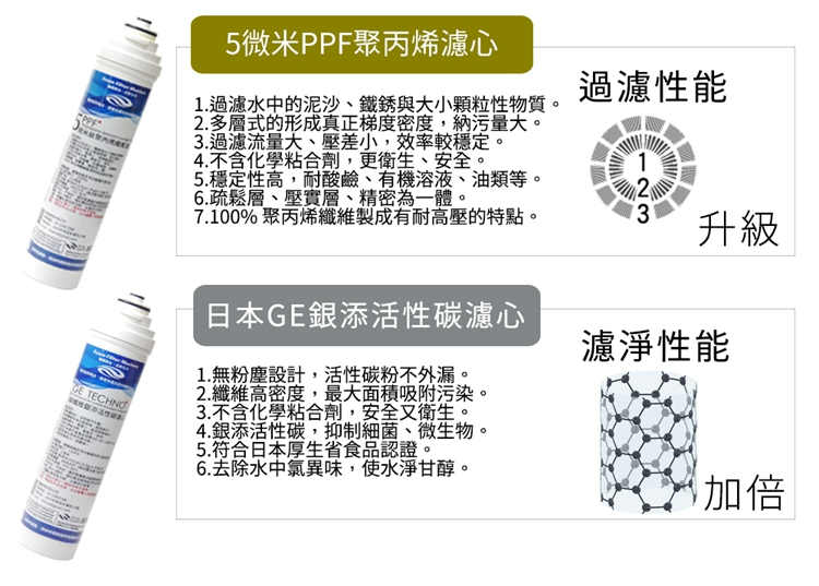 濾材一旦過水使用,即開始過濾水中各種雜質或汙染物,若超過建議更換時間未予更換,將無法確保過濾品質,嚴重將成為細菌溫床,反讓濾水系統汙染。為確保您飲水衛生安全,請定期更換濾心。