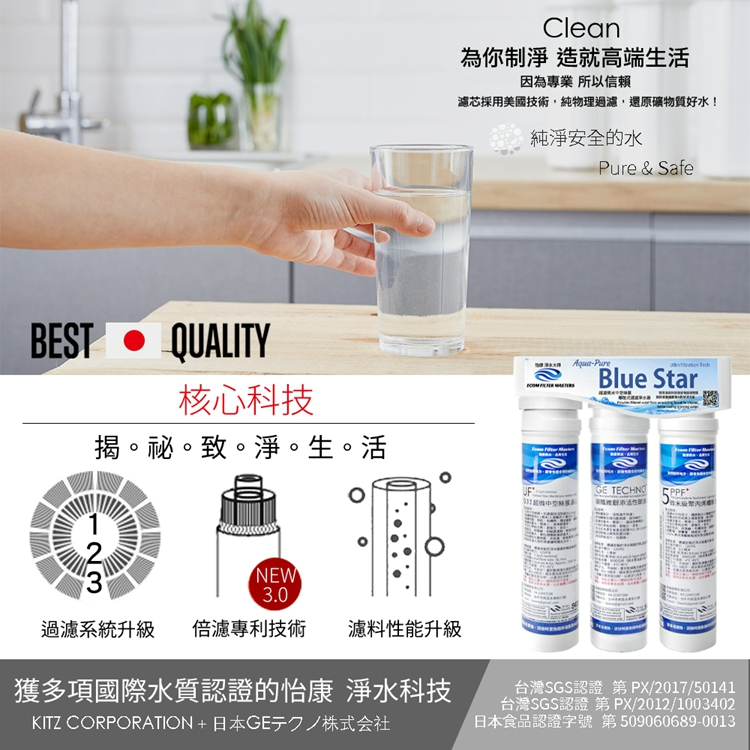 ★本商品為藍星系列【廚上型】【廚下型】快拆式三道 除氯 淨水器★