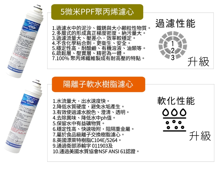 濾材一旦過水使用,即開始過濾水中各種雜質或汙染物,若超過建議更換時間未予更換,將無法確保過濾品質,嚴重將成為細菌溫床,反讓濾水系統汙染。為確保您飲水衛生安全,請定期更換濾心。