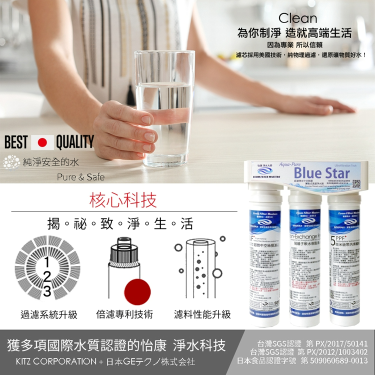 ★本商品為藍星系列【廚上型】【廚下型】快拆式三道 軟水 淨水器★